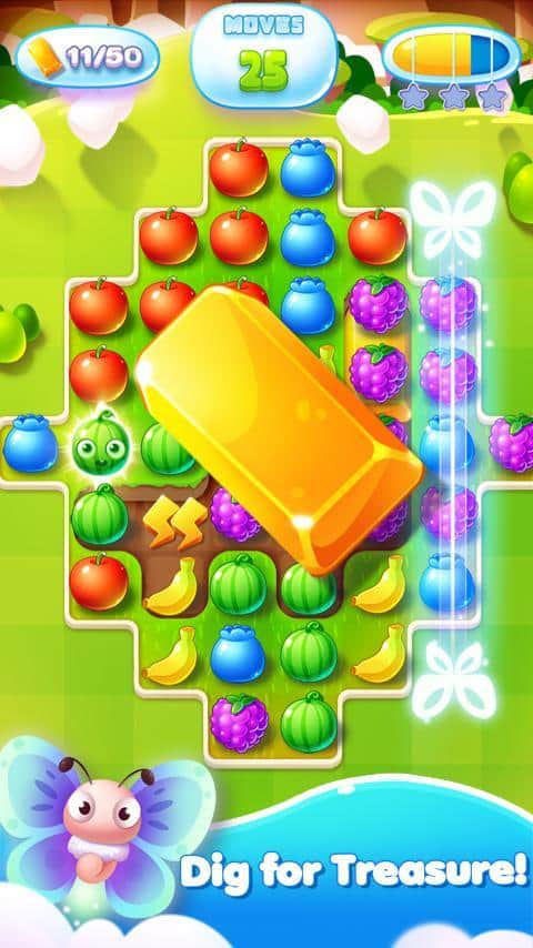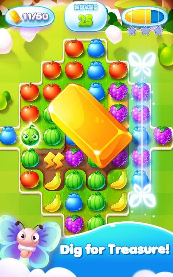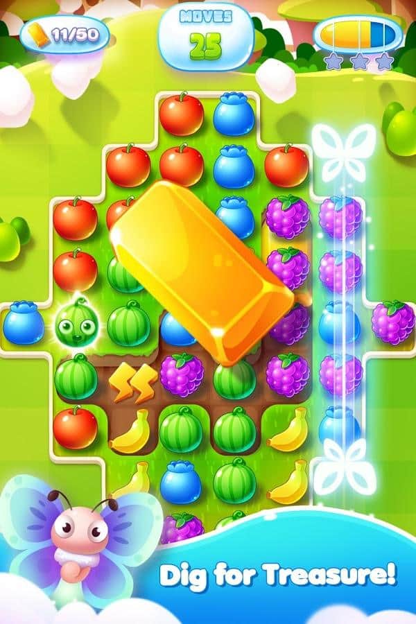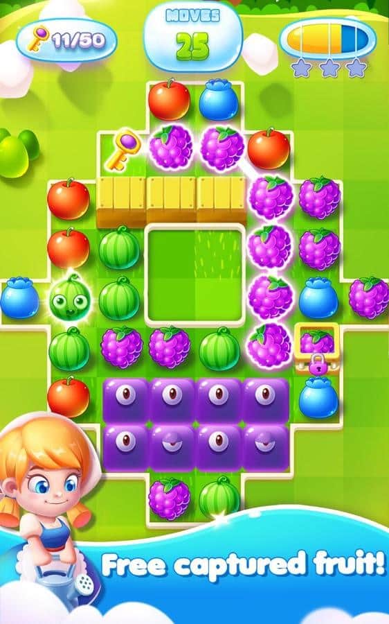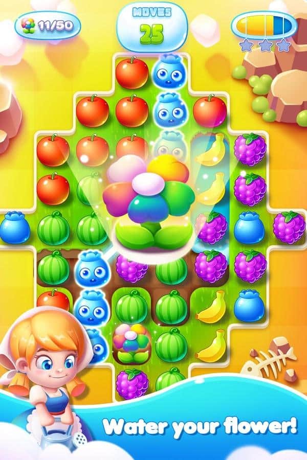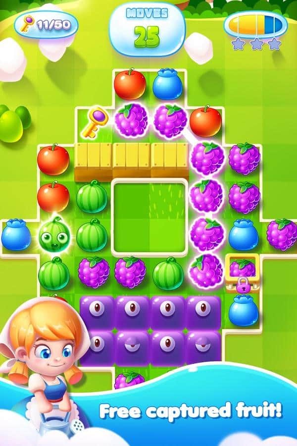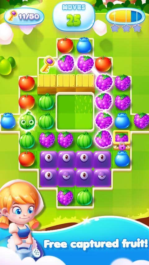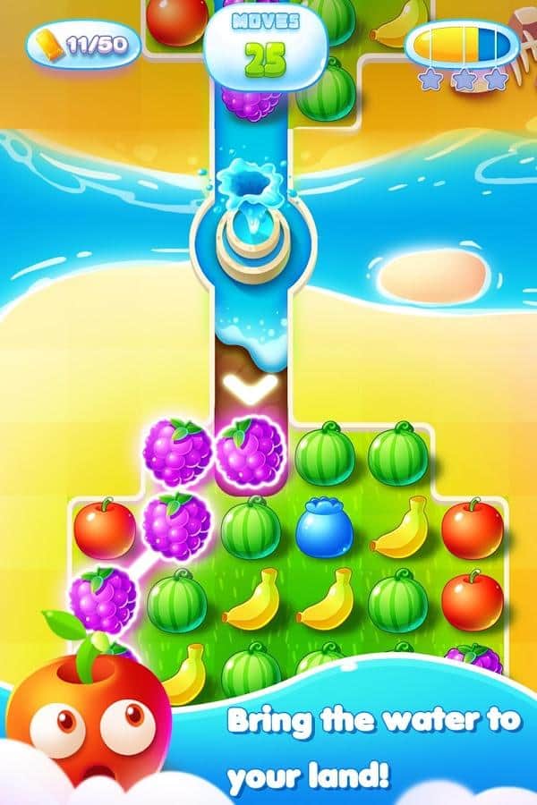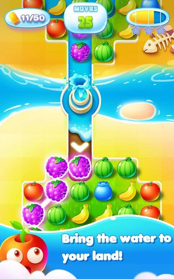 Juice Splash 2 – головоломка з жанру три в ряд де ви будете вирішувати непрості завдання. Складайте по три і більше однакових фрукта поспіль і висаджуйте їх. Намагайтеся скласти якомога довший ряд з соковитих фруктів і розблокувати всі комірки. Подорожуйте по казковому світу цієї гри і отримуйте цінні нагороди у вигляді монеток і золота. Вирішуйте складні задачки запропоновані грою і направляйте водні потоки в потрібному напрямку. Запускайте в дію ланцюгові реакції і забирайте з поля відразу кілька фруктів, звільняючи місце для інших. Виконуйте щоденні завдання і піднімайтеся всі вище в таблиці лідерів і досягнень.