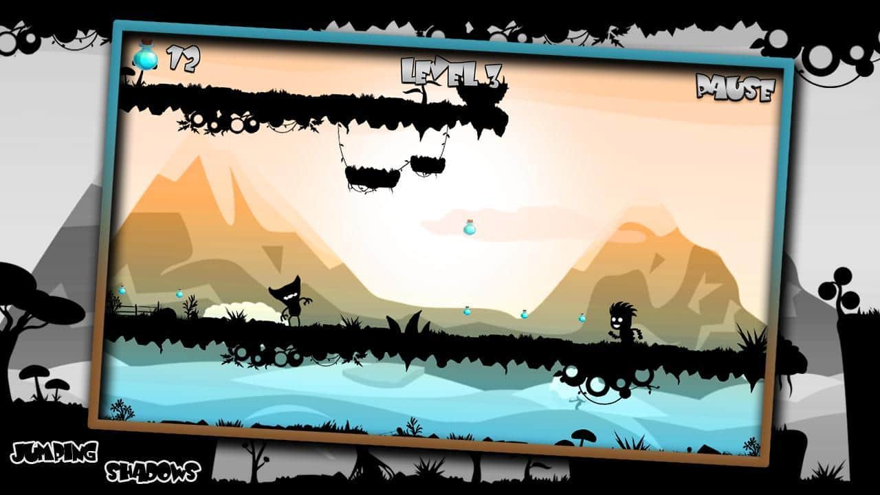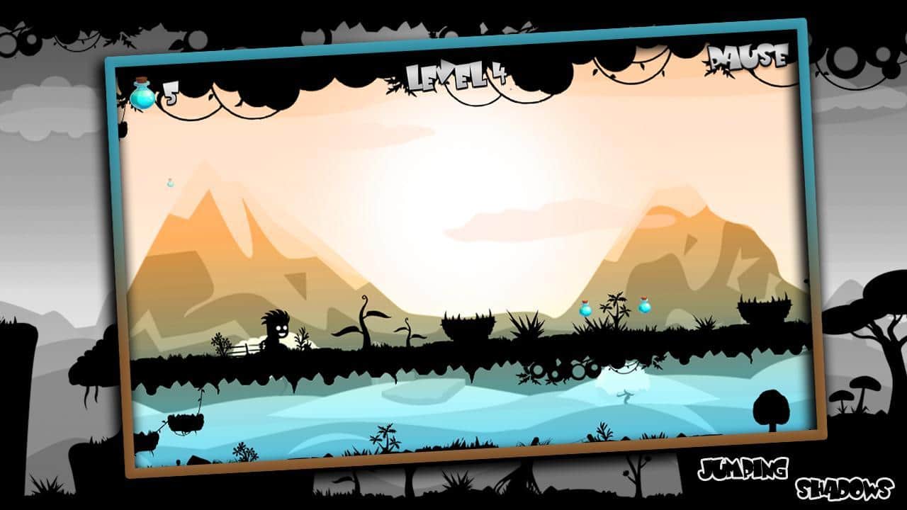 Jumping Shadows - захоплююча аркада зроблена в темних тонах з надзвичайно легким керуванням. Вам належить управляти чоловічком, який біжить через різні світи і перестрибуючи через колючі рослини і шипи. Управління в грі дуже легке від вас вимагається тільки в певні моменти натискати на екран, щоб ваш герой здійснив стрибок. У грі більше 100 рівнів, які розділені на три рівня складності, якщо по початку вам буде здаватися, що гра осінь проста, то потім рівень складності злетить вгору і вам буде потрібно докласти чимало зусиль, щоб пройти їх.