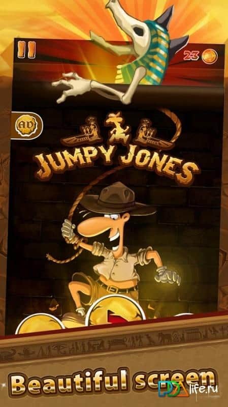 Jumpy Jones - пригодницька гра, сюжет якої розповість нам про те, як в далекому 1936 році була знайдена гробниця єгипетського фараона Tutakhamu. Однак настільки грандіозне історичне відкриття обернулося непередбаченими наслідками, всю країну охопило прокляття. Найвідоміші археологи зі всього світу були покликані для того, щоб допомогти жителям країни позбавитися від прокляття, однак результатів поки нічого не приносило. Вам відводиться роль одного з найбільш досвідчених, амбітних і розумних археологів, доктора Джонса. Вам належить відправитися в нескінченні коридори піраміди і постаратися відшукати відповіді на всі питання і найголовніше ключ, який допоможе зняти прокляття. Відмінна графіка в поєднанні з пригодницьким сюжетом захопить вас на довгі години.