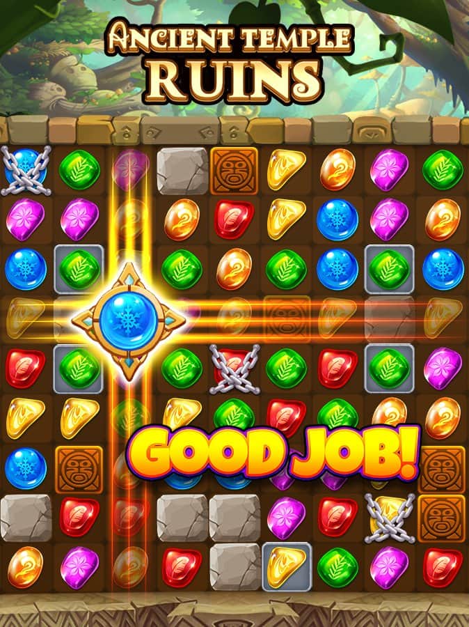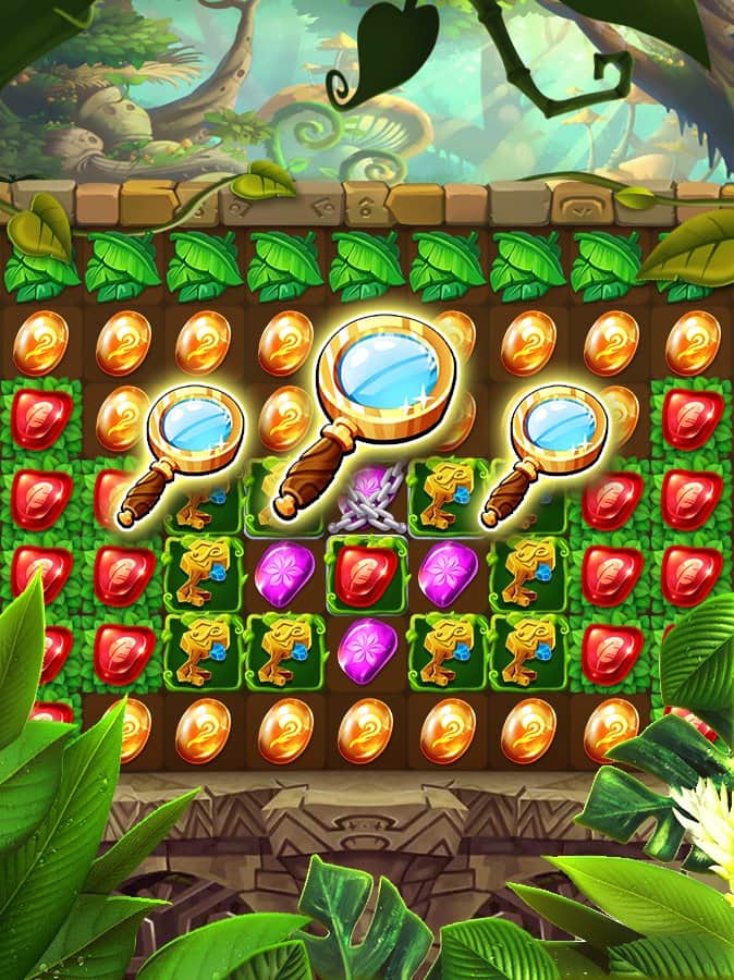 Jungle Crush Diamond – захоплююча гра з жанру три в ряд на андроїд, де ви будете досліджувати стародавній храм загублене в джунглях. У цій грі вашою головною задачею буде складати ряди з трьох і більше дорогоцінних каменів і збирайте незліченні скарби. Обходьте стороною пастки і перешкоди у себе на шляху і пробирайтеся все далі в глиб занедбаного храму. Підключайте свою логіку і кмітливість і вирішуйте складні завдання, розкривайте силу каміння і проробляйте комбо удари. Отримуйте цінні призи і відкривайте для себе нові рівні, яких в грі представлено більше 1000.