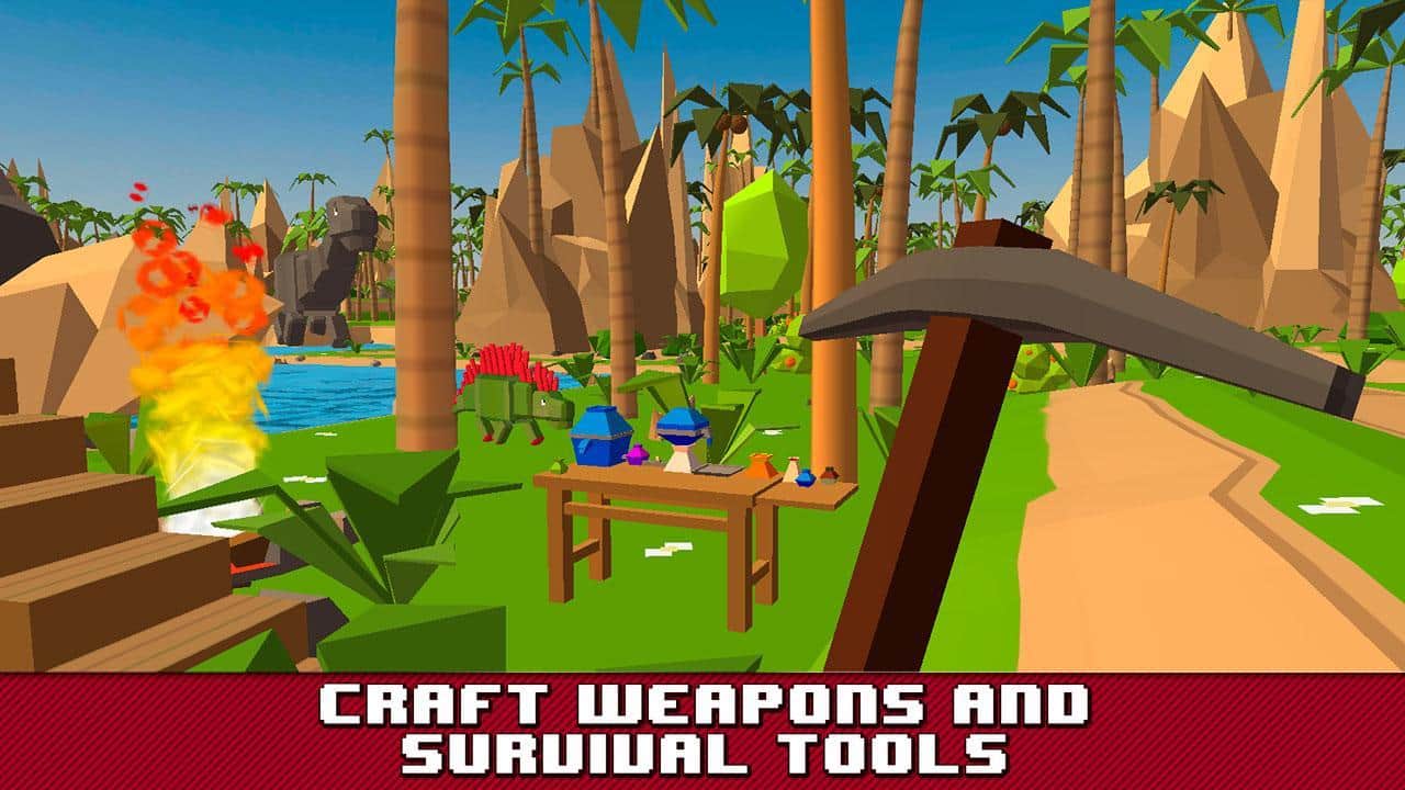 Jurassic Island Survival Sim – симулятор для андроїд з виживання на острові населеному динозаврами. У цій грі ви опинитеся в доісторичному світі, де живуть динозаври, вашим головним завданням буде вижити. Дослідіть величезний острів і здобувайте собі прожиток, полюючи на диких звірів, а також створюйте зброю з підручних засобів. Здобувайте корисні ресурси і матеріали і будуйте собі житло для захисту від ворогів і диких звірів. Вступайте в смертельні бої з динозаврами, які мешкають на острові, і не дайте їм погубити вас. Гра зроблена в оригінальній блокової графіку і порадує вас великою кількістю різних динозаврів.