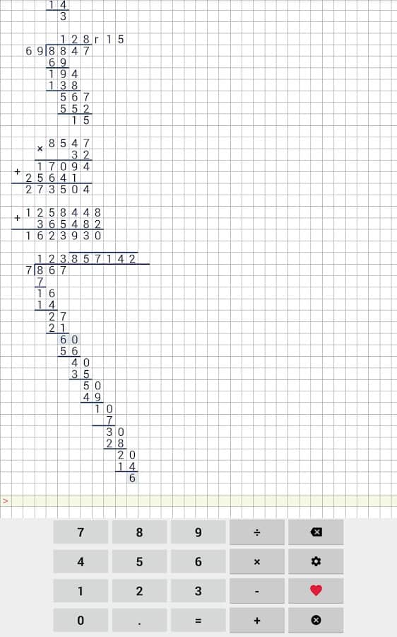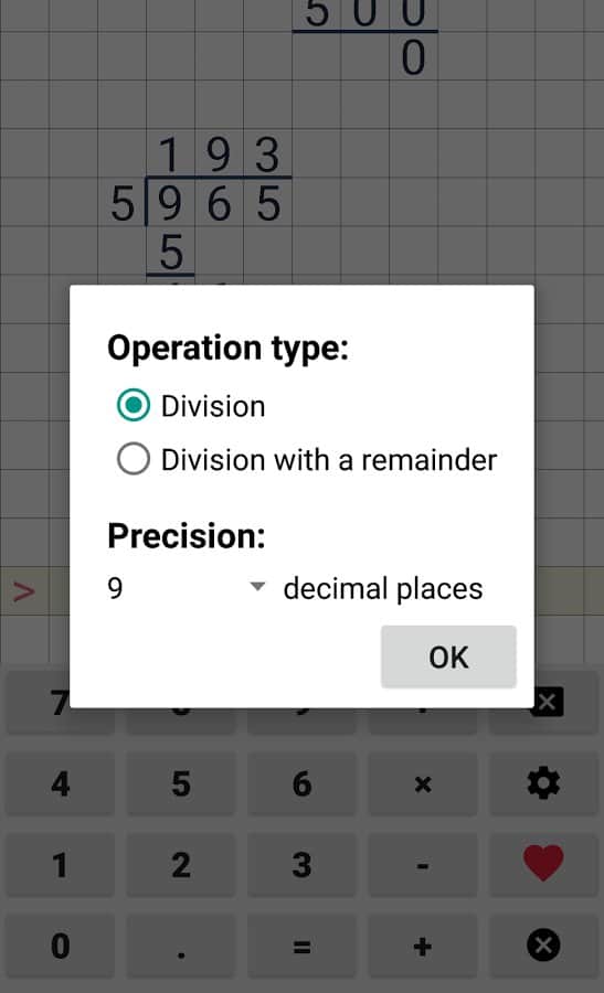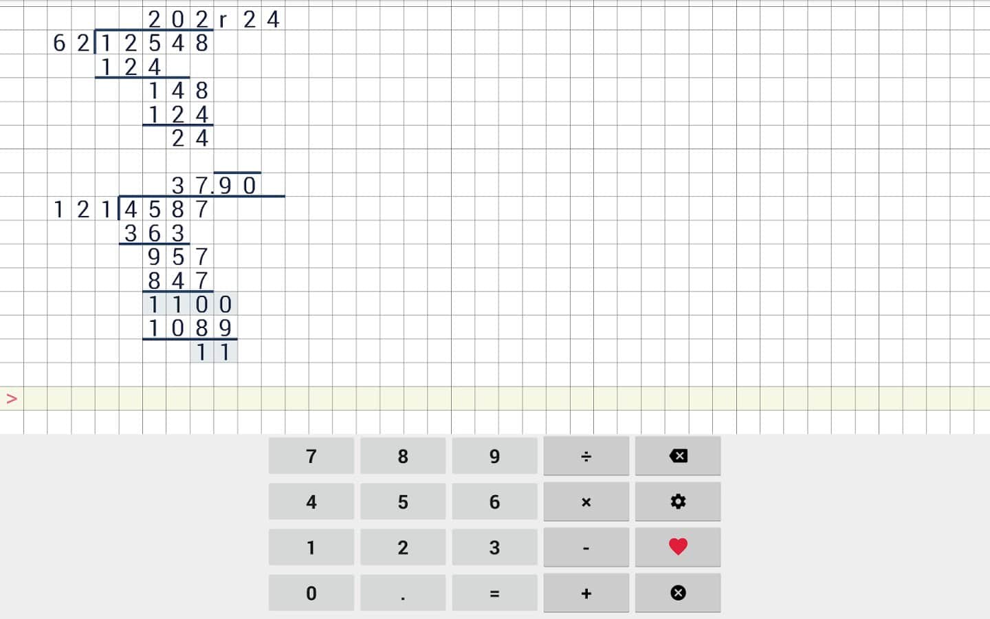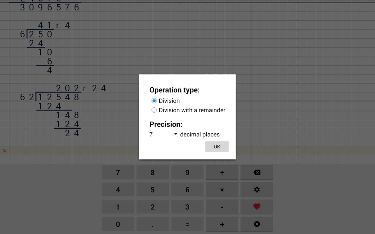 Division calculator - зручний додаток для школярів і студентів. Тепер не потрібно займатися обчисленням в стовпчик у зошиті в клітку. Зручно, швидко і практично. Додаток буде доповнювати звичайний калькулятор і будуть відмінним помічником у навчанні.