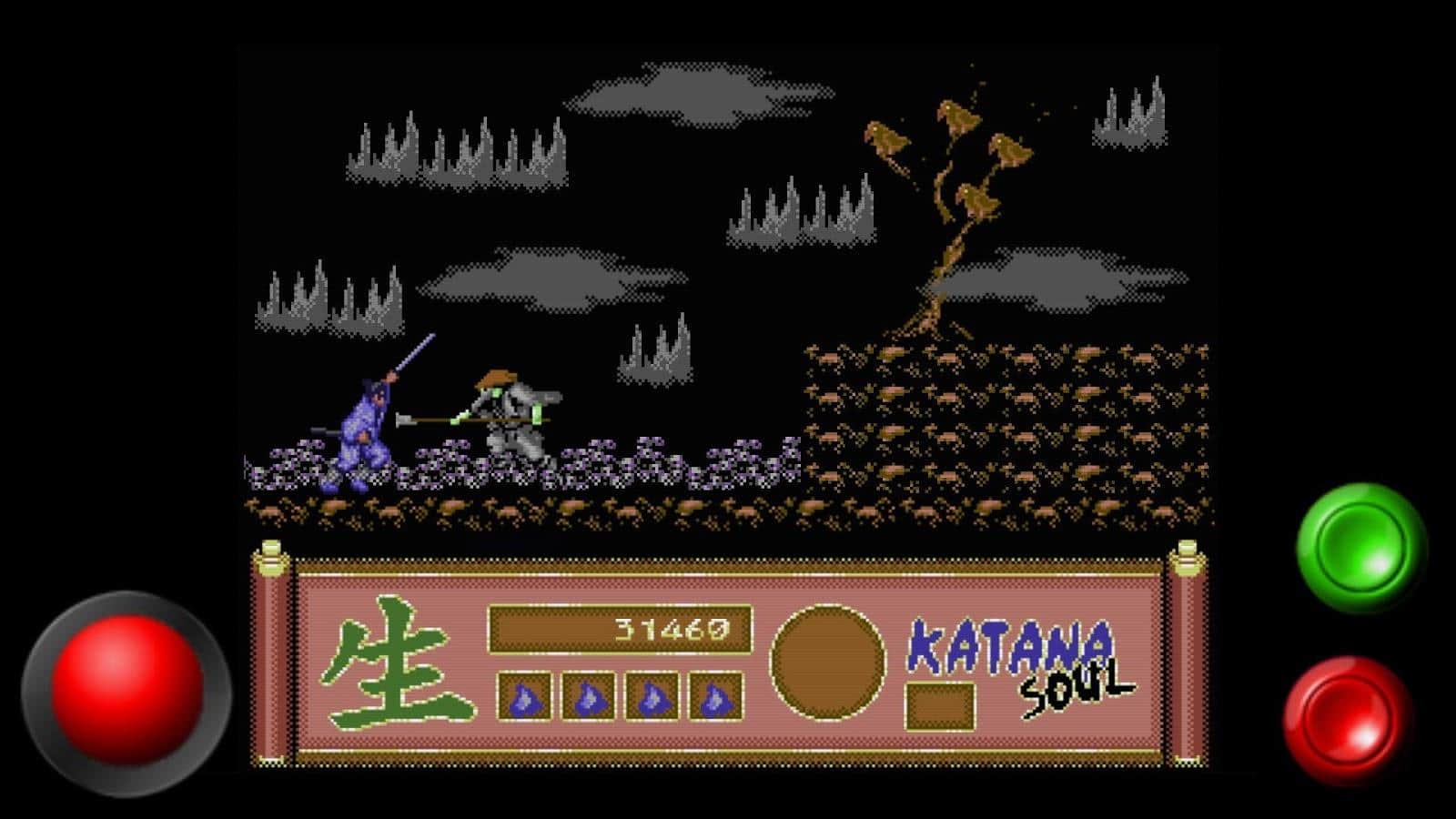 Katana Soul – екшен з горизонтальною прокруткою на андроїд, де ви перенесетеся в епоху Сенгоку в стародавній Японії. Ця гра була створена для любителів 8-бітних ігор і ретро графіки. Ця гра представляє з себе короткий пригода близько 30 хвилин повне жахливих монстрів, численних перешкод і ворогів. За сюжетом гри ваш герой відправляється в небезпечну подорож, щоб розкрити силу маски тенгу і погасити демонічне прокляття. На своєму шляху ви зустрінете більше 30 демонічних істот яких вам належить здолати, використовуючи для цього свій меч катана.