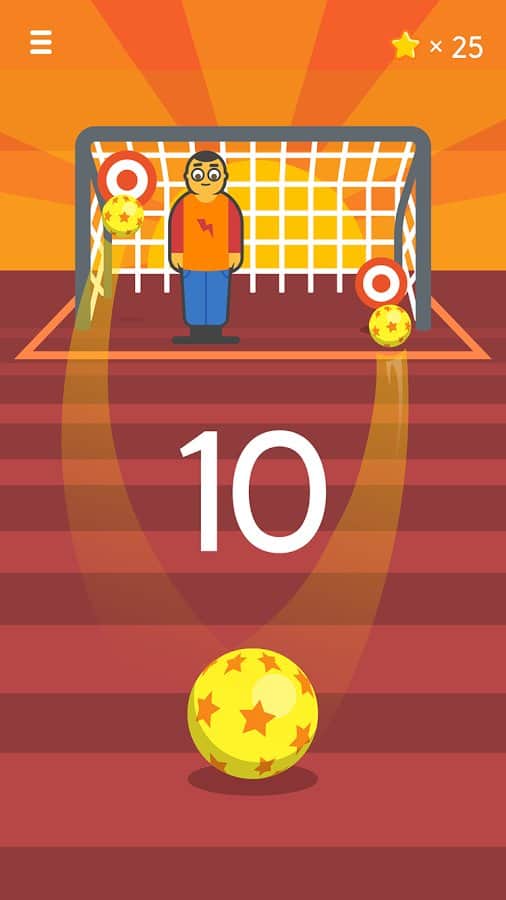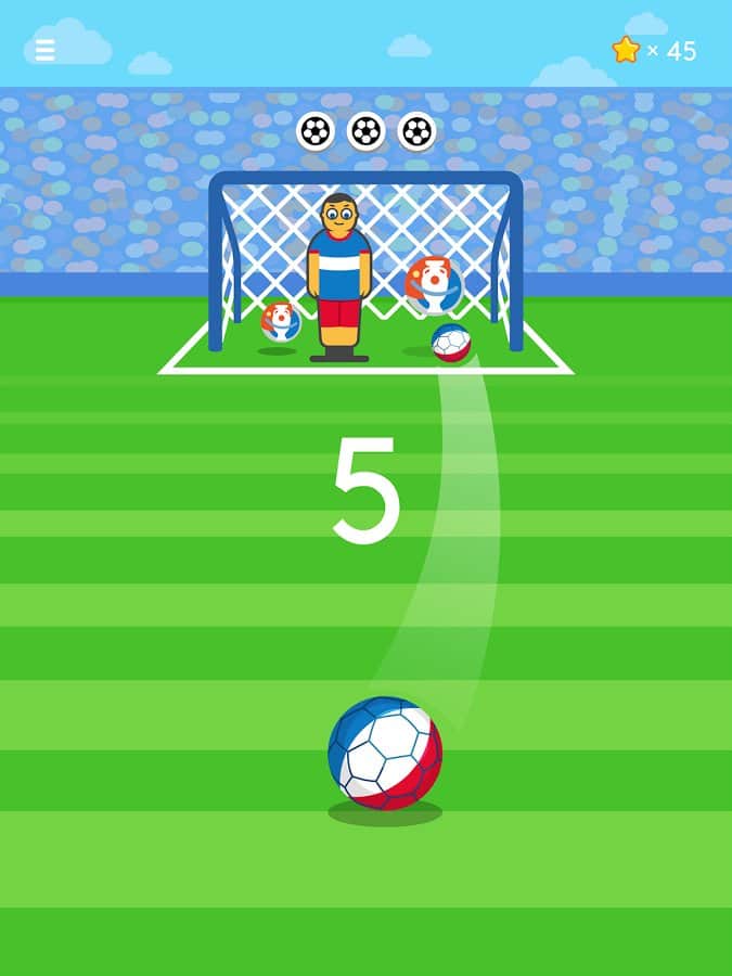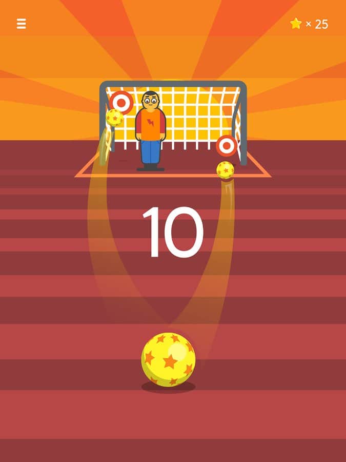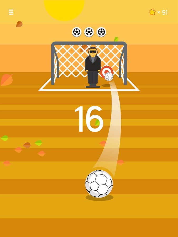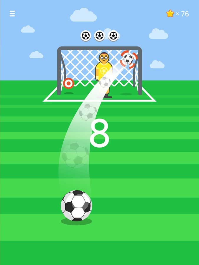 Ketchapp Football – забивайте футбольні м'ячі в ворота у цій захоплюючій грі для андроїд. У цій грі ви потрапите на футбольне поле, де вашою головною задачею буде забивати м'ячі у ворота супротивника і вражати наявні мішені. Приводите в рух м'яч за допомогою одного дотику пальця і забивайте голи, точно продумуючи траєкторію польоту при цьому уникаючи потрапляння в рухається воротаря або штангу. Підбирайте правильний момент для удару і бийте по м'ячу. Встановіть свій рекорд в цій грі і отримуйте доступ до нових м'ячів і неповторним локаціях гри. У грі представлено три режими гри, а також гра порадує вас простим управлінням і мінімалістичною графікою.