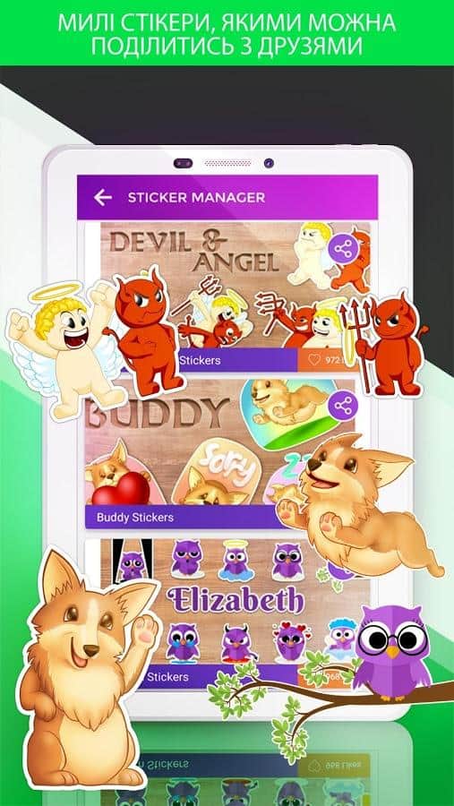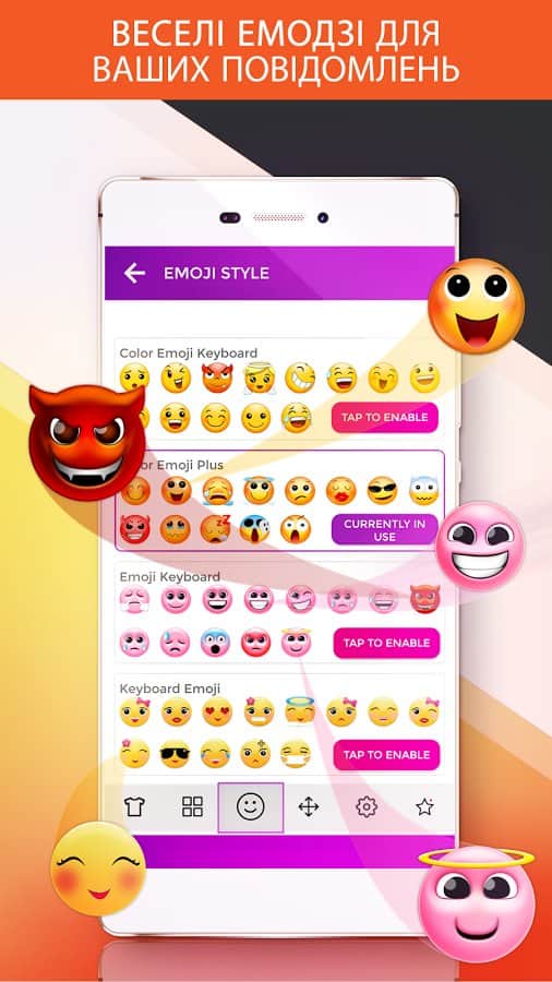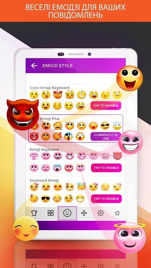 Клавіатура включає в себе пакет різних смайликів, які стануть