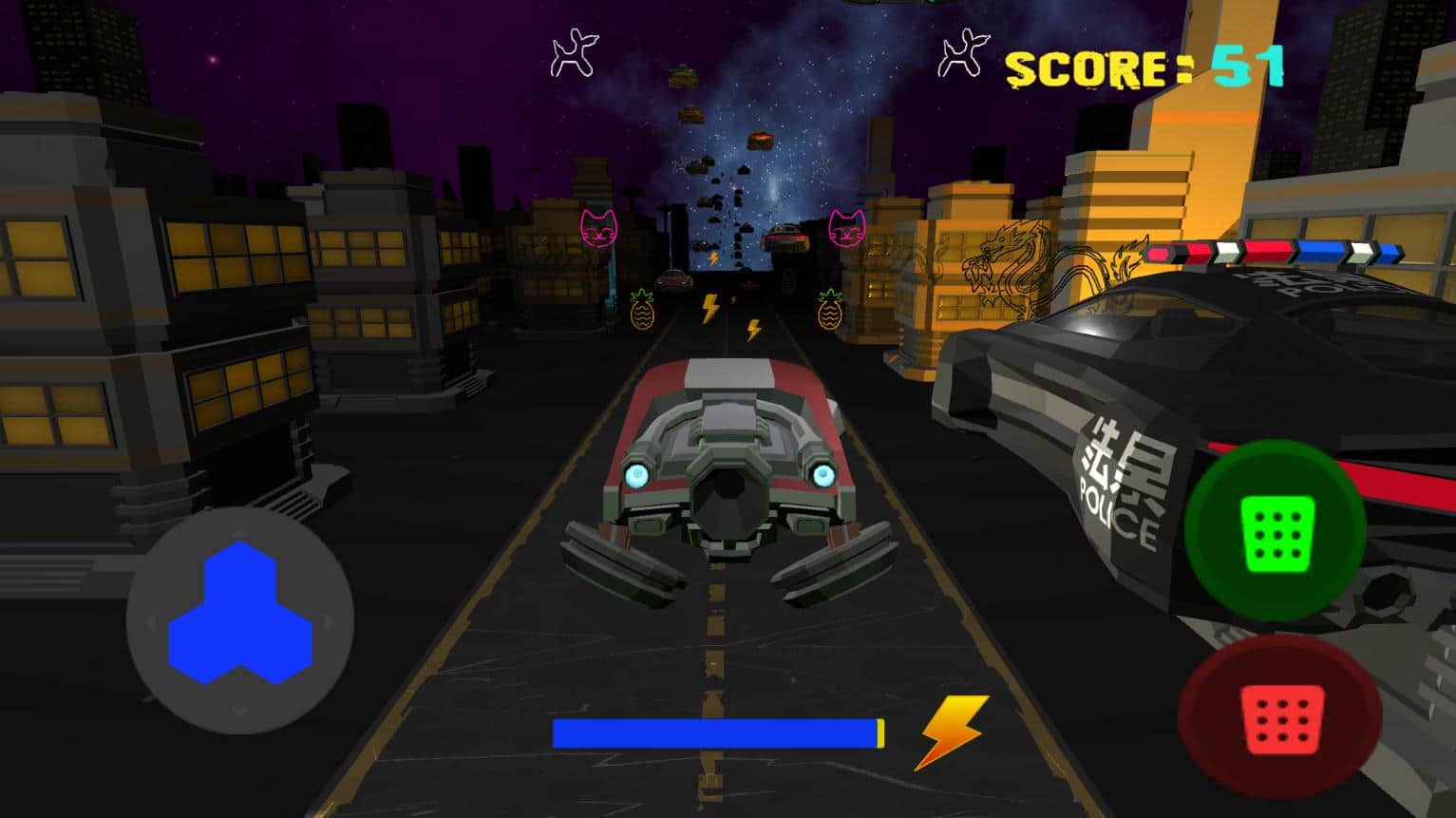 Хочете дізнатися, що чекає нас через 67 років? Кіберпанк 2088 - це гра майбутнього, де світ став зовсім іншим. Тепер Землею правлять роботи, які люблять веселитися в клубах або на вулицях. Темне небо, високі хмарочоси, літаючі автомобілі, неонові вивіски, незвичайні костюми на роботах, покази фільмів на площі, зміна погодних умов і дивні закладу можна побачити тільки тут. Ви можете не тільки гуляти по місту, але і битися з потужним зброєю проти титанів. У грі є 2 режими: вільний рух і їзда на літаючих машинах.