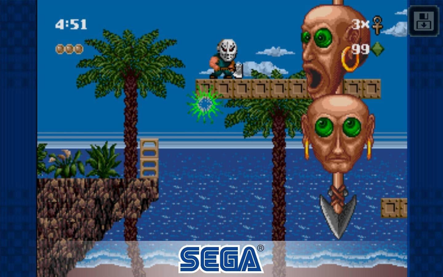 Kid Chameleon – відомий платформер для андроїд, де ви зможете випробувати себе в ролі відважного героя. У цій грі ви будете грати за звичайного хлопця по імені Кід Хамелеон який отримав дивовижну силу яку дають йому чарівні маски. Ці маски допомагають нашому герою стати непереможним воїном, лицарем, кровожерливим вбивцею і маніяком з сокирою. Переміщайтеся по небезпечного світу і вступайте в сутички з численними ворогами намагаючись зупинити віртуального лиходія. Всього в грі ви знайдете дев'ять масок, які будуть давати вам різні сили і можливості.
