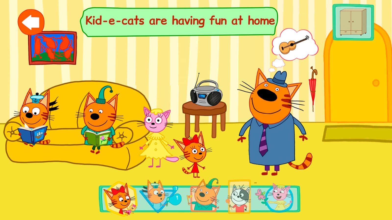 Kid-E-Cats Fun and Adventures Games for Kids – збірник ігор для малюків від 3 до 6 років. Ці ігри створені за сюжетом мультфільму Три Кота від ТБ каналу СТС. У цій грі ваша дитина знову зустрітися з уже знайомими йому героями і будете допомагати їм виконувати різні місії і завдання гри. Грайте в цю гру з вашою дитиною і насолоджуйтесь відмінною яскравою графікою і численними рівнями. Всі ігри в цій грі російською мовою і будуть супроводжуватися закадровим голосом, який буде говорити, що робити.