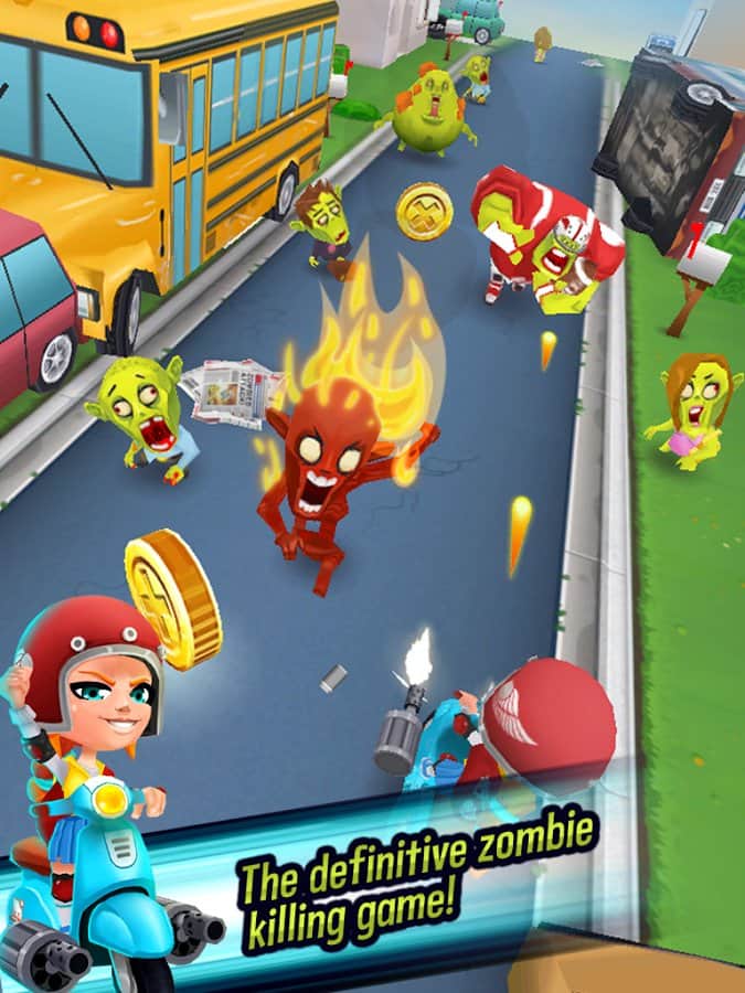 Kill All Zombies! – KaZ – динамическая игра для андроид, яркая графика, простое управление, забавные транспортные средства, большое количество зомби-монстров. Мчитесь по улицам города и уничтожайте на своем пути оживших мертвецов. Приятной охоты!
