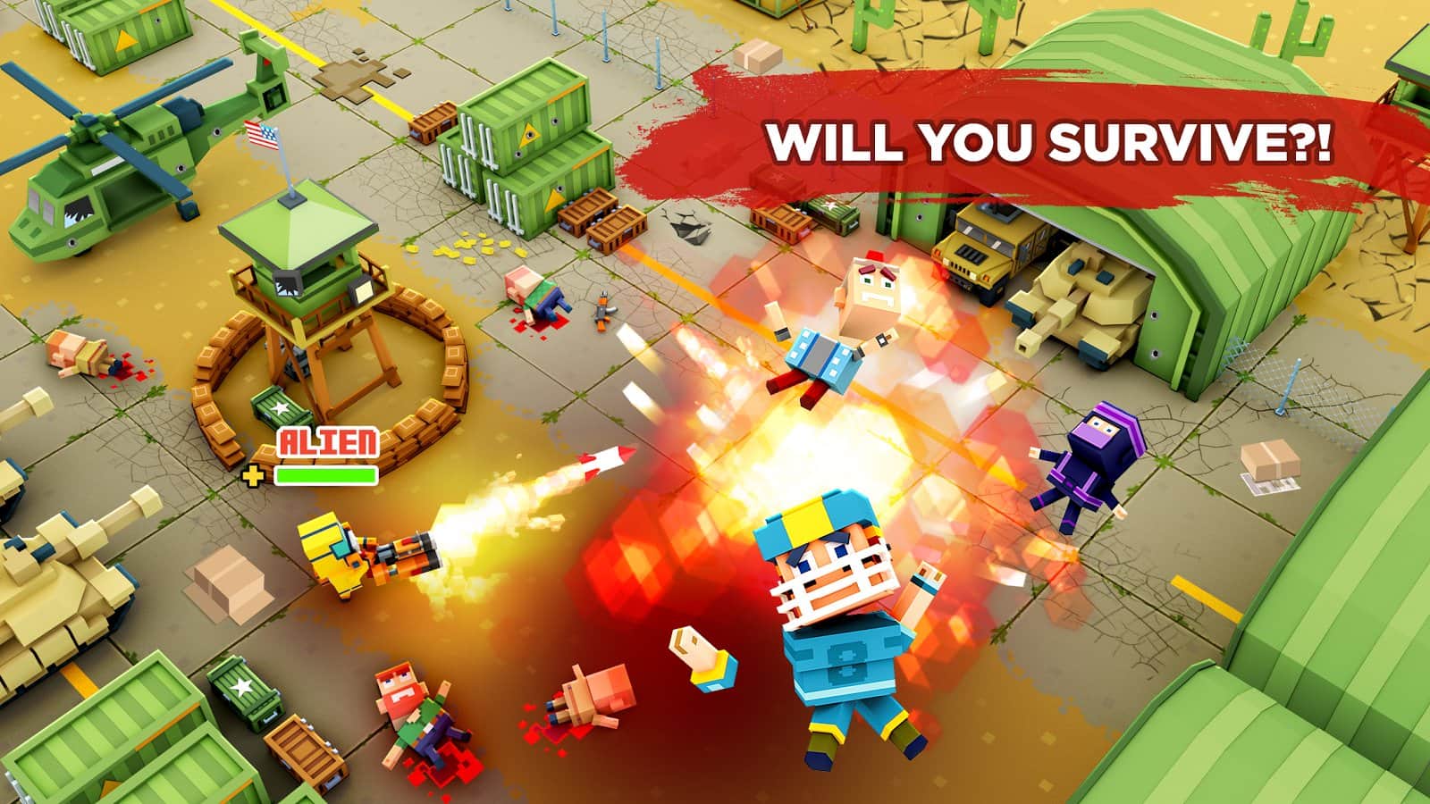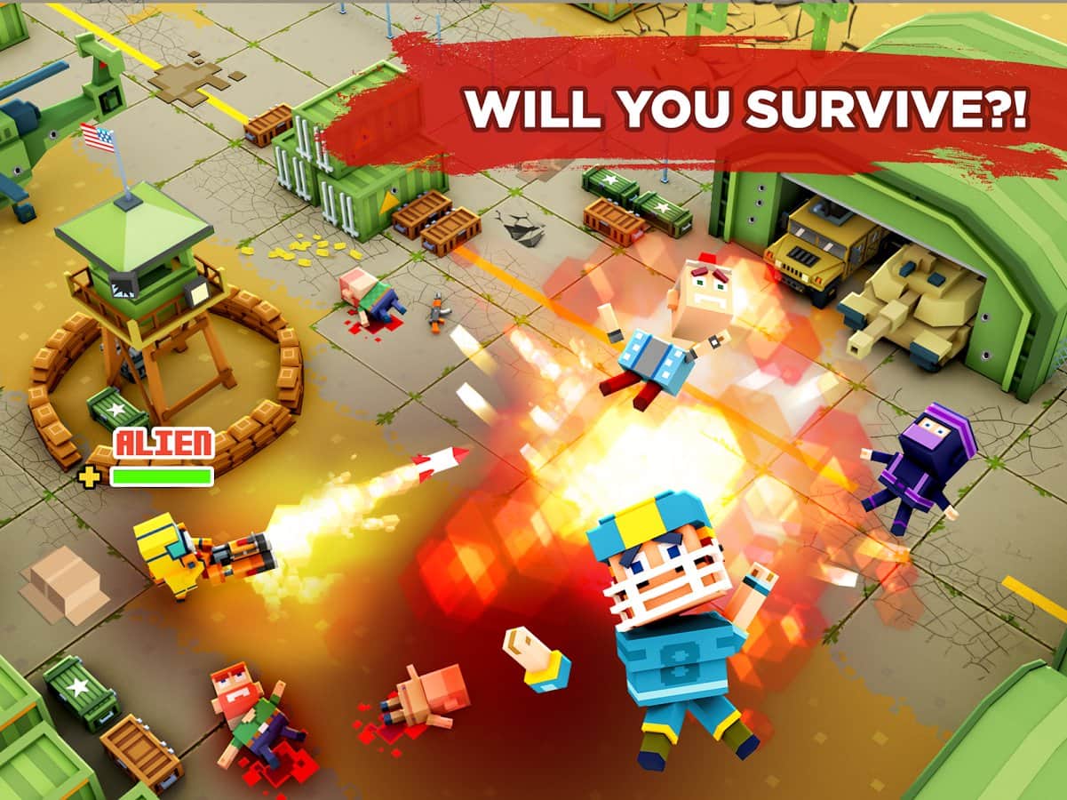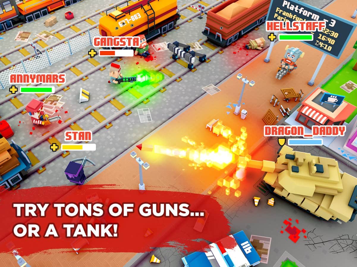 Kings of Guns – відмінний шутер на андроїд, з виглядом зверху, де ви візьмете в руки зброю і будете знищувати все живе в цьому місті. У цій грі ви опинитеся в світі після зомбі-апокаліпсису, де всі живі люди перетворилися на зомбі, і навіть ті хто залишився в живих став вашим запеклим ворогом. За допомогою потужного зброї, такого як: пістолет, дробовик, АК-47, базука, вогнемет, бензопила, а також трактор і танк знищуйте не тільки зомбі, але і інших гравців пересуваються по карті. Почніть грати прямо зараз і кидайте виклик самим кращим гравцям і своїм друзям. Ведіть вогонь по рухомих мішенях і намагайтеся вижити в цьому небезпечному світі.
