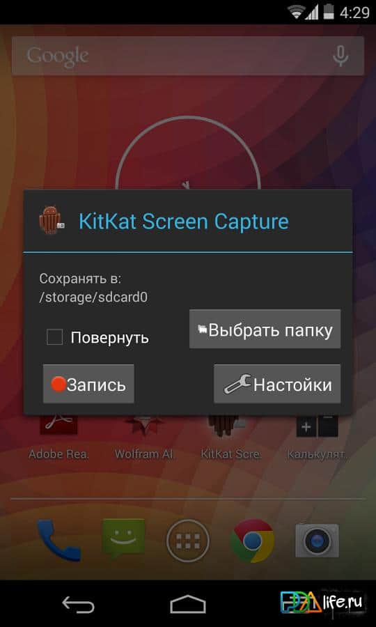 KitKat Screen Capture – все просто! Приложение для андроид устройств от разработчика Slimdroid, позволяющее делать видео запись с экрана вашего смартфона/планшета. Единственное НО, во всем этом – это необходимость наличия прав root пользователя. Приятного пользования! Для работы приложения необходима версия Android 4.4+