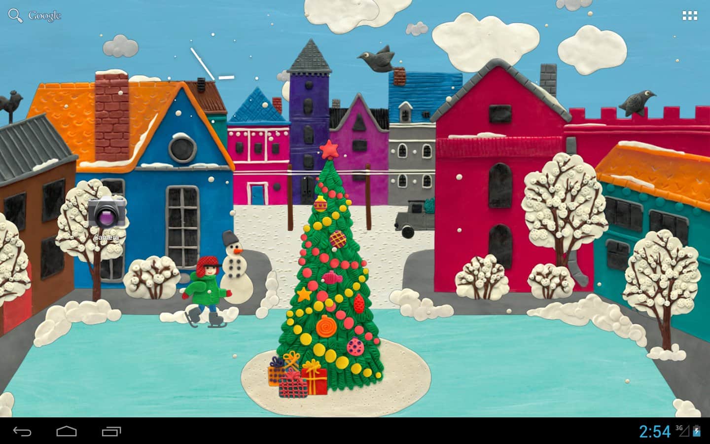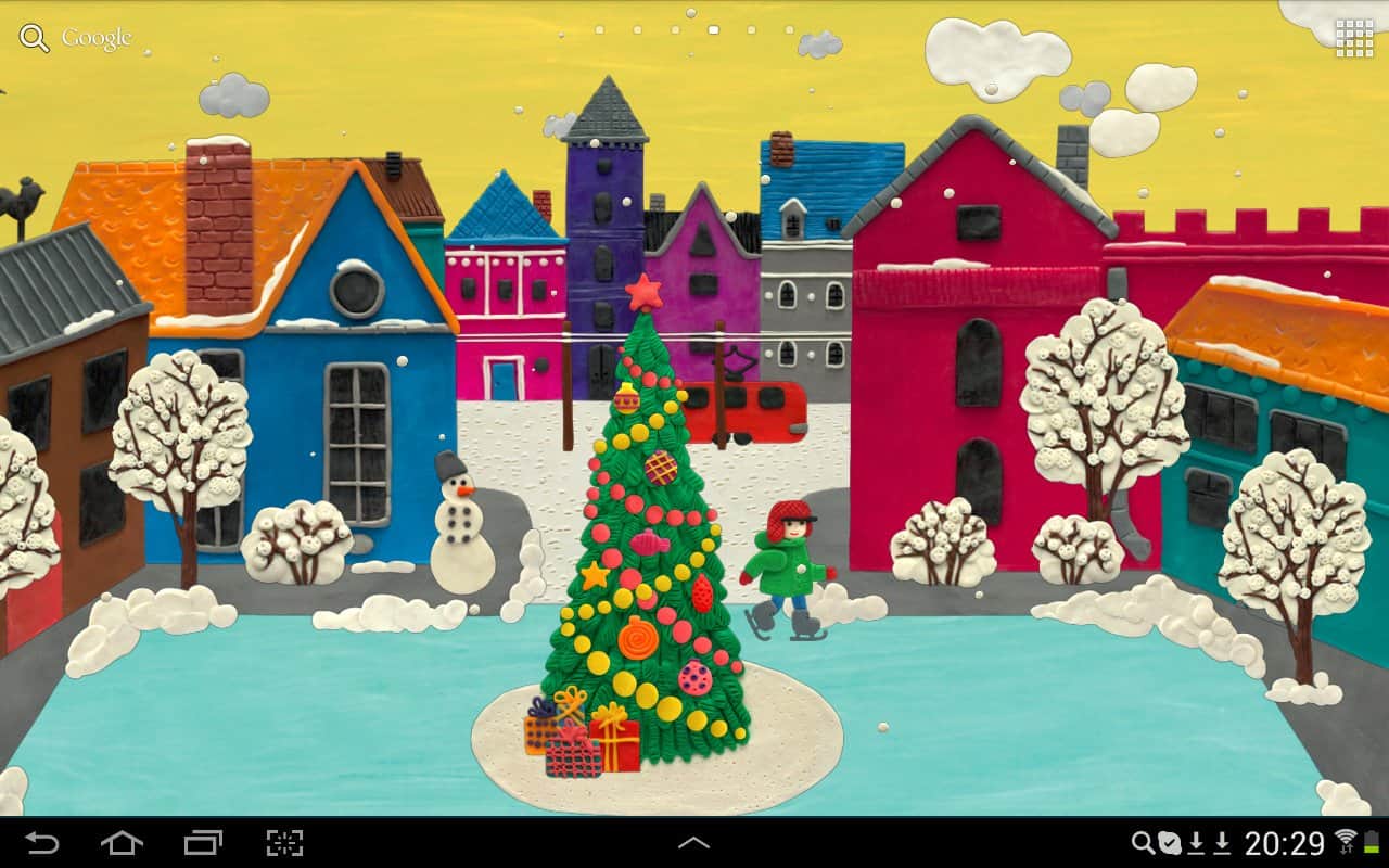 KM Winter town Live wallpaper - качественно выполненные живые обои. Пластилин как будто ожил и старается передать вам рождественское настроение и очарование зимнего времени года. Небольшой городок в преддверии праздников. Главный каток находящийся в городе является к тому же центральной площадью на которой и будет установлена главная ёлка города. Живые обои имеют ряд настроек, которые непременно смогут персонализировать ваш рабочий стол. Изменяем настройки погоды, скорость ветра и количества снега, наблюдаем за красивым фейерверком и звёздным небом. Это только малая часть того на что способны живые обои. Устанавливайте их и радуйтесь зимнему настроению.