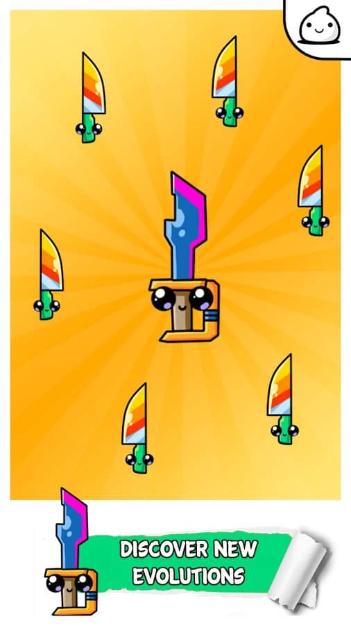 Knife Evolution - Flipping Idle Challenge Game – весела гра на андроїд, де ви будете брати участь в еволюції ножів. У цій грі вашою головною задачею буде натискати на екран свого телефону або планшета і з'єднувати між собою різні ножі отримуючи зовсім новий вигляд. Перетворюйте звичайні ножі в неймовірні форми та види. Подорожуйте по різних країнах, де ви зустрінетеся з новими незвичайними ножами і спробуєте зробити еволюцію, заповнюючи весь світ новими ножами. Збирайте потрібні вам монетки і відкривайте для себе нові види холодної зброї, це можуть бути як ножі, так і сокири. Всього в грі представлено 30 видів ножів, безліч локацій і декілька етапів гри.