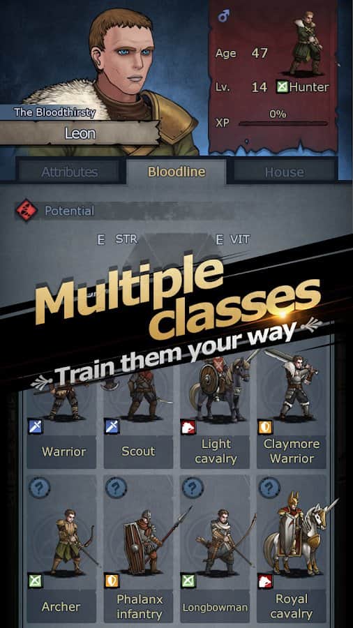 Knights of Ages (Early Access) – мобільна SRPG на андроїд, де ви перенесетеся в Європу в середньовічний артуровский період. У цій хардкорного грі поєднуються такі жанри як стратегія, військові шахи, покрокові бої і відмінний сюжет. У цій грі ви візьмете під свій контроль відважного воїна і будете вирішувати його долю. У грі ви знайдете більше 20 класів персонажів, кожен з яких має свої вміння і навички. Зберіть свою групу найманців і розробляйте свою тактику ведення бою щоб привести своїх братів до неминучої перемоги. Розвивайте й удосконалювати навички та вміння своїх воїнів і не забувайте проводити торгові операції. Створюйте свої сім'ї і наслідуйте унікальну сімейну реліквію.