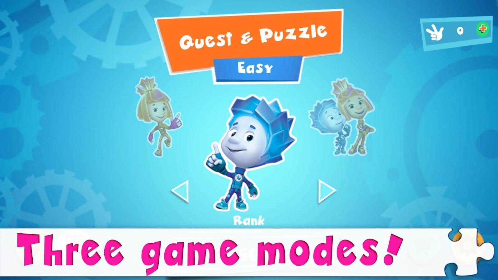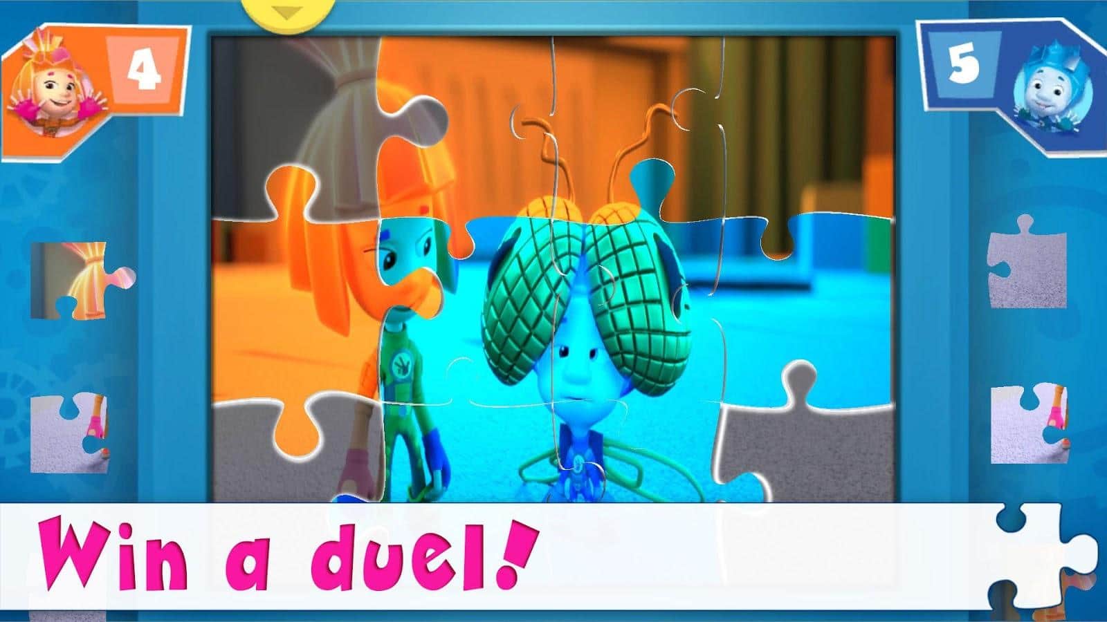 КвестоПазл - отличная игра для самых маленьких, в которой предстоит собрать пазл. Кто быстрее это сделает? Соревнуйтесь и вы обязательно об этом узнаете. В игре вы узнаете сцены из ваших любимых серий про фиксиков. Режим дуэли поможет вам выяснить, кто быстрее соберёт пазл. Играть можно на одном андроид устройстве. Поверьте это очень весело и увлекательно. В игре вас ждёт 50 разнообразных пазлов, которые могут состоять из 12, 24 и 45 частей. Выбирайте уровень сложности по своим силам. В игре есть система рангов, так что мотивация для победы у вас есть.