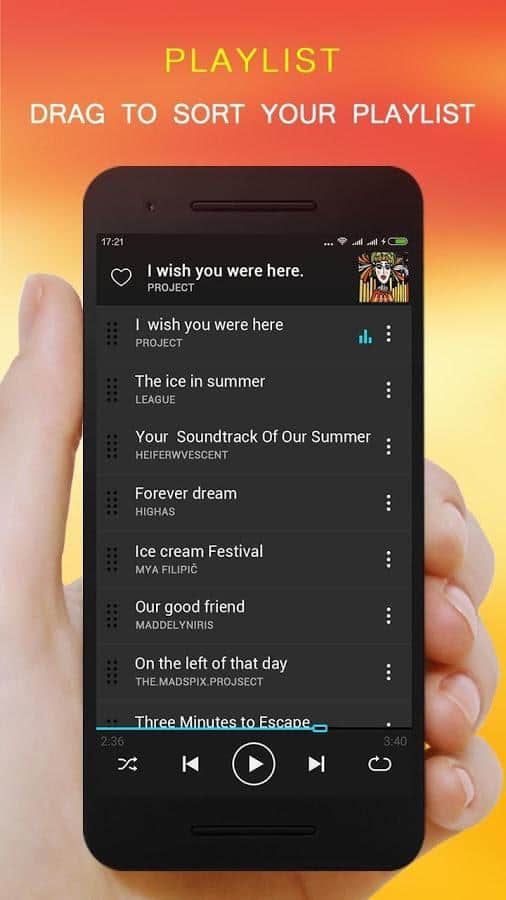 KX Music Player - Досить незвичайний, але дуже якісний музичний програвач. У ньому дуже багато функцій, а так само дуже крутий еквалайзер, а так само, є досить цікаві функції. Такі як мікс, ви можете взяти різні пісні, і з'єднати їх випадковим чином, подивіться що у вас вийде. Підтримує всі відомі формати. Так само, тут є безліч інших функцій, які ви зможете оцінити самі, якщо скачаєте цей додаток. Так само, ви зможете створювати свої плей-листи, і простим перегортанням змінювати їх.