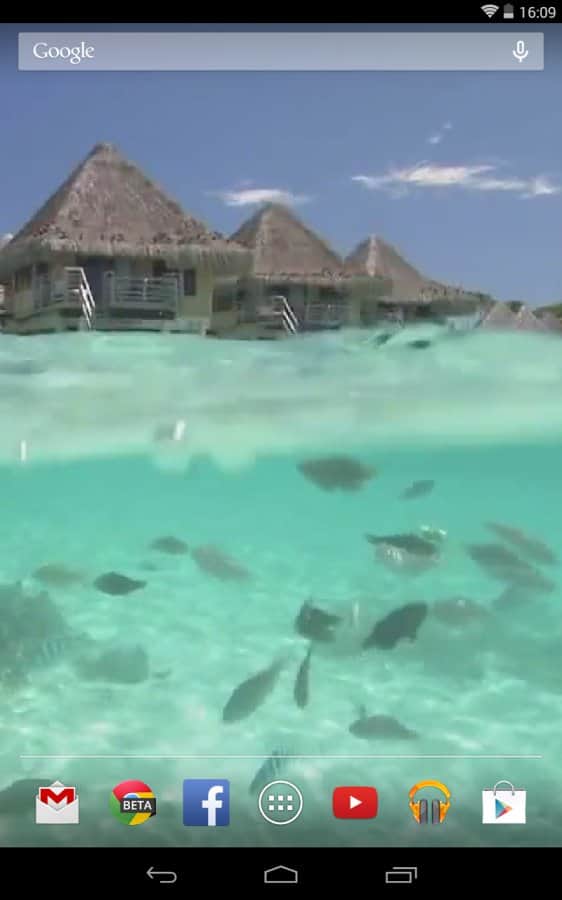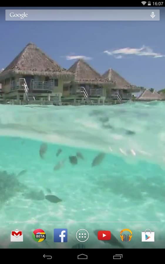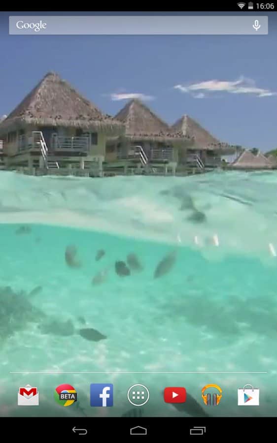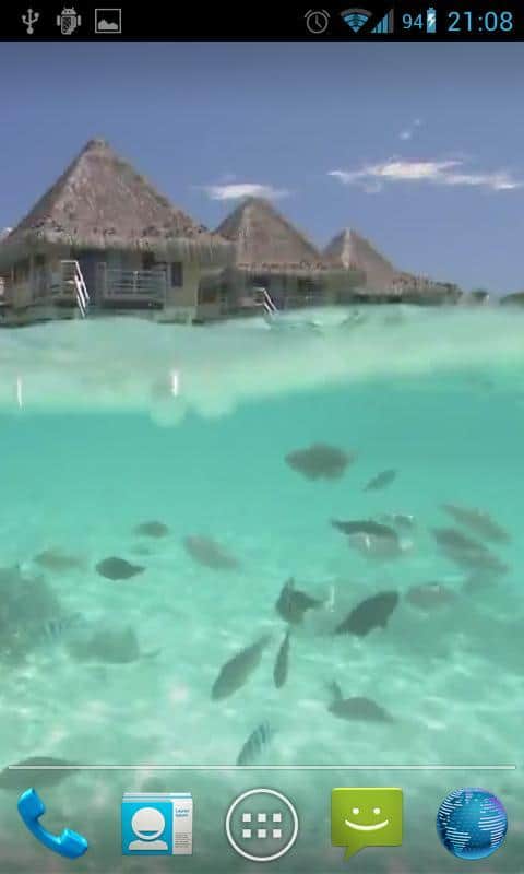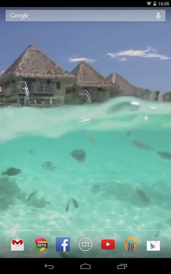 Lagoon Waves HD-Красиві і заспокійливі живі шпалери для андроїд смартфонів / планшетів з видом з океану на рибальські хатини. Надзвичайно привітний океан наповнений рибками, лінія хвиль, океанічне піщане дно, на якому грають сонячні відблиски. Встановіть шпалери, Lagoon Waves HD, на екран свого пристрою і відчуття теплого сонячного літа буде з вами цілий рік!