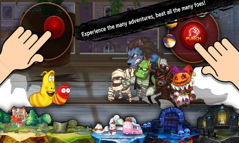 Larva Action Fighter – управляйте командою відважних личинок, жуків і комах і дайте відсіч усім ворогам. У цій грі вашою головною задачею буде знищити всіх мумій, скелетів і зомбі і не дати їм захопити країну жуков. Подорожуйте по різних світах і вступайте в бій з численними ворогами застосовуючи на ділі всі вміння і здібності своїх героїв. Не забувайте збирати чарівні цукерки, які знадобляться вам для розвитку і покращення навичок героїв. Набирайтеся досвіду і кидайте виклик реальним гравцям з усього світу і бийтеся з ними на арені. Відкривайте всіх жуків, яких у цій грі представлено більше 16 і піднімайтеся на самий верх таблиці лідерів.