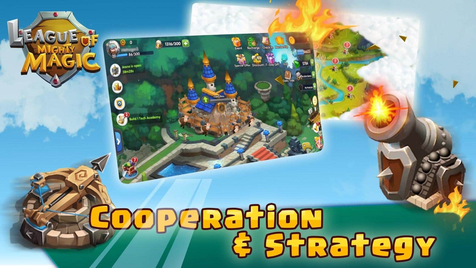 Legend of Mighty Magic – стратегія на андроїд, де ви будете досліджувати далекий континент. У цій грі вашим завданням буде зібрати свою величезну армію бійців, де кожен герой буде володіти унікальними вміннями та магією. Вступайте в бій з темними силами і монстрами, що живуть на цьому континенті і перемагайте їх в нерівних битвах. Розробляйте свою непереможну тактику ведення бою, враховуючи всі особливості своїх героїв. Займайтеся також будівництвом свого замку і захистом його від ворогів. Створюйте непереможні гільдії з друзями і разом боріться проти реальних гравців зі всього світу.