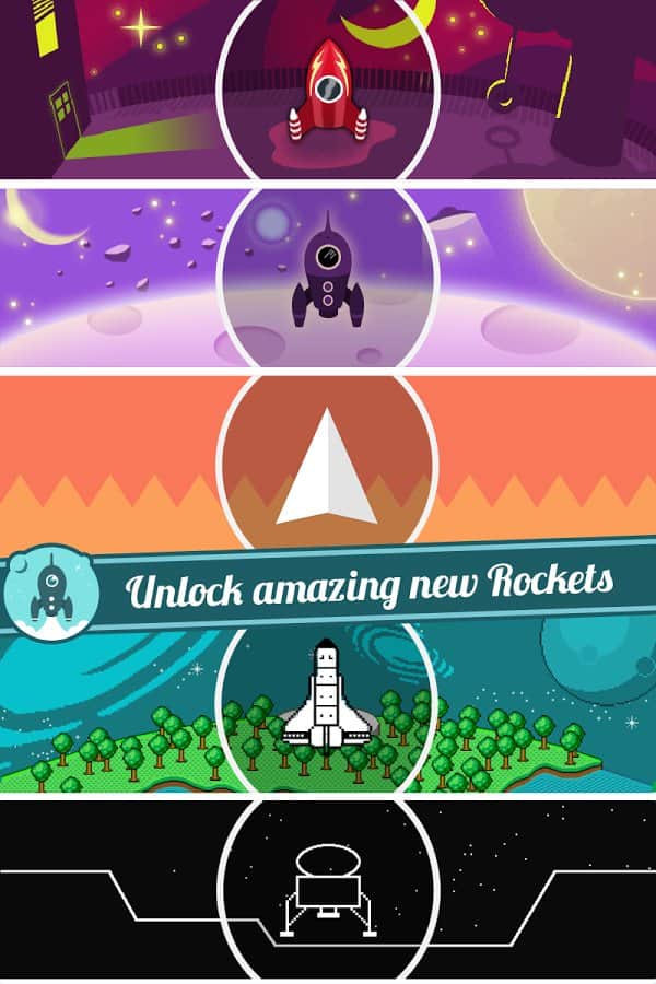 Let's Go Rocket – увлекательная игра, в которой вам предстоит контролировать ракету, летящую через пространство над поверхностью Земли. Управляйте своей ракетой и перемещайте ее в разные направления для того чтобы избежать столкновения с платформами, астероидами, космическими кораблями и другими препятствиями которые будут появляться на вашем пути. По ходу движения собирайте драгоценные камни и тратьте их на покупку новых уникальных по дизайну и параметрам ракеты. Игра порадует вас простым управлением, интересными и многочисленными уровнями, а также таблицами лидеров и достижений.