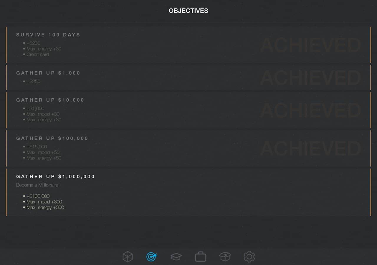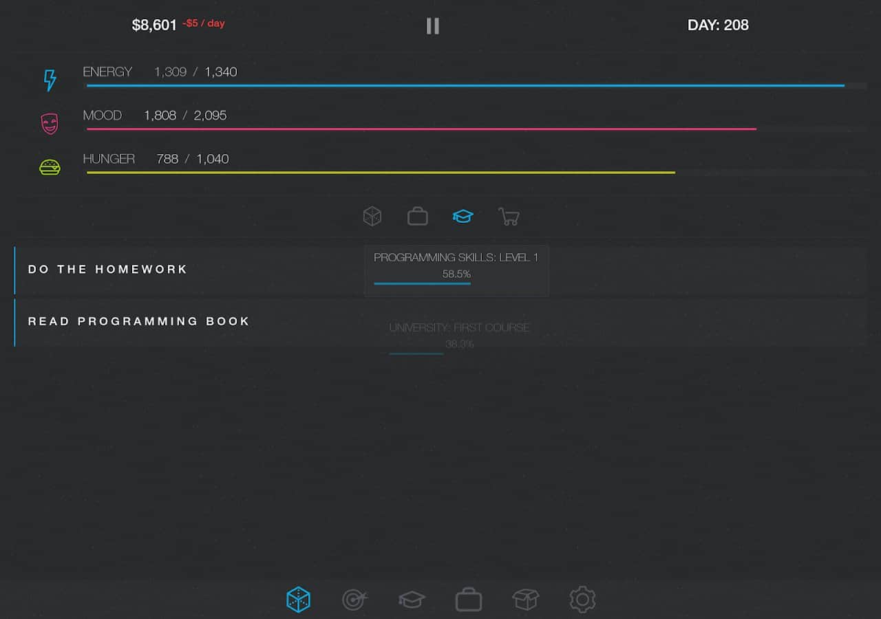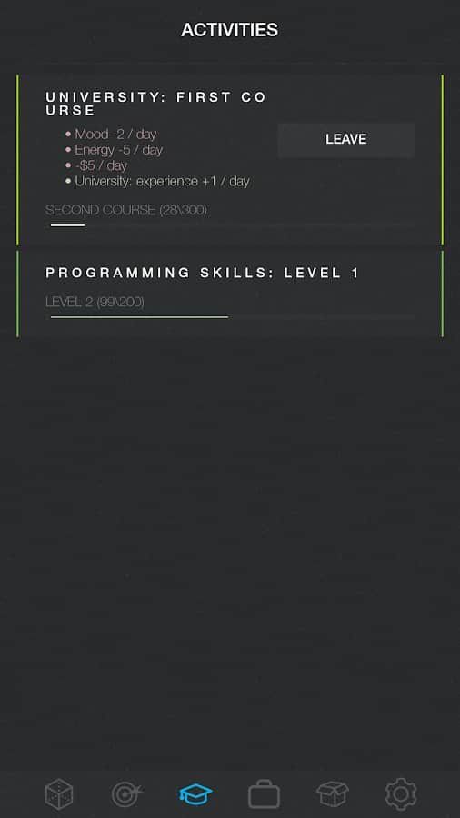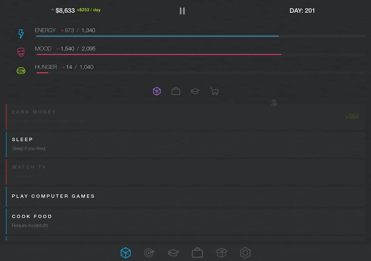 Симулятор життя 2: Нове життя – продовження текстового симулятора життя на андроїд. У цій грі ви опуститеся на саме дно життя, з якого вам необхідно вибратися і домогтися успіху. Спочатку у вас не буде грошей на їжу, житло та одяг. Виконуйте різні дії і місії і відкривайте нові можливості для свого героя. Розвивайте і прокачуйте свого персонажа і ставте собі цілі і завдання, а також купуйте потрібні вам предмети і влаштовуйтеся на роботу. Як тільки ви досягнете грошової стабільності, відкривайте свій бізнес і займайтеся тим, чим вам хочеться. Постійно стежте за своїм здоров'ям, настроєм та енергією.
