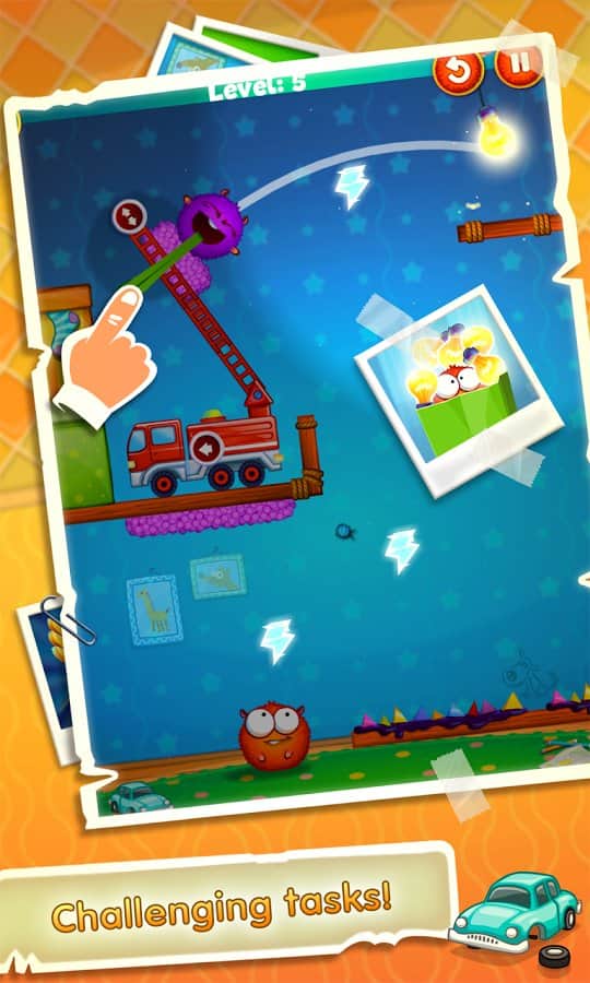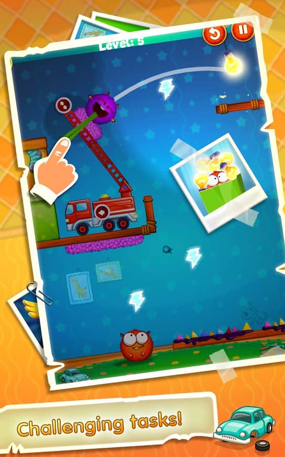 Lightomania - Захватывающая аркадная головоломка, которая очень напоминает на знаменитую Cut the Rope. Только эта совсем другая игра! Вас ждет веселый и увлекательный геймплей с двумя причудливыми шарами, которые охотятся за светом. Вам предстоит помочь им потушить все лампочки на протяжении семидесяти двух уровней в трех различных этапах. Решите вместе логические задачки, и вы заработаете дополнительные бонусы и награды.