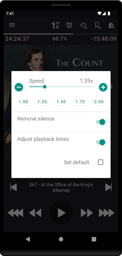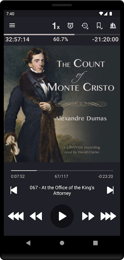 Приложение рассчитано на тех, кто часто и помногу слушает аудиокниги, а также ценит простоту и лаконичность интерфейса. Несмотря на внешнюю простоту, программа содержит максимум полезных функций: таймер сна, автоматическую регулировку громкости, создание очереди воспроизведения, сортировка файлов, скачивание обложек для книг, встроенный эквалайзер, регулировку скорости воспроизведения и др. Для максимального комфорта предусмотрено несколько виджетов на выбор. Приложением поддерживаются форматы MP3, M4B, M4A, OPUS, и OGG.
