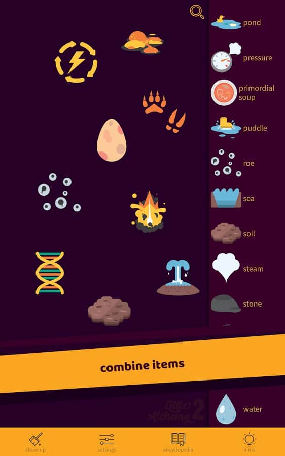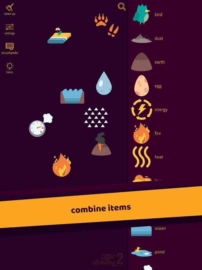 Little Alchemy 2 – продовження захоплюючої гри на андроїд, де ви будете створювати свої неповторні світи. У цій грі вашим завданням буде створювати нові матеріали, створювати і відкривати нові предмети. Ця гра буде тренувати вашу логіку і кмітливість і ви зможете проявити всю свою фантазію створюючи незвичайні предмети і читати їх забавні опису. Відкрийте для себе нову бібліотеку, яка порадує гравців великою різноманітністю представлених у ній предметів. Грайте в цю гру і отримуйте максимум задоволення від відмінної графіки, оригінального звукового супроводу і енциклопедії з захоплюючими описами. Відкрийте для себе неповторний світ цієї гри.