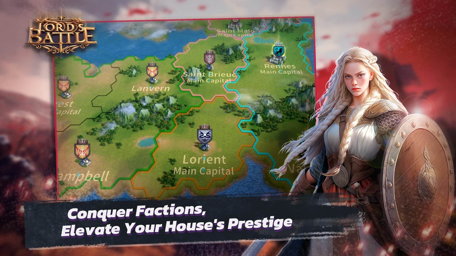 Lords Battle - Приєднуйтеся до захоплюючого світу політичних інтриг та війни, ставши головою могутнього дому в епічній битві лордів. Ваша доля залежить від вашого тактичного генію, здатності контролювати території та керувати відносинами з вашим домом. Мета очевидна - завойовувати нові країни, розширювати кордони вашої імперії та прославляти свій Дім як найвеличніший у світі. Ваш шлях до влади наповнений викликами, включаючи вирішення конфліктів між підлеглими та розв'язання проблем, що стоять перед процвітаючою імперією.