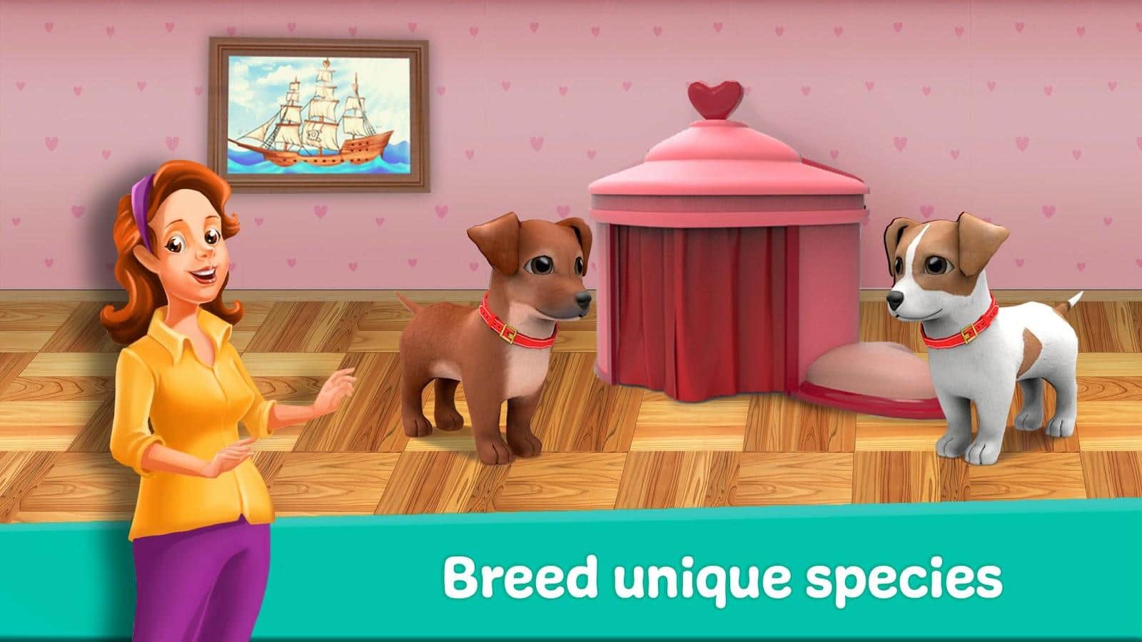 Lovely Pets Dog Town – симулятор на андроїд, де ви будете розводити різні породи собак. У цій грі вашою головною задачею буде зібрати свою неповторну колекцію собак і підвищувати їх рівень, виконуючи різні завдання. Автори цієї гри зробили все можливе щоб собаки мали унікальний зовнішній вигляд і різні манери поведінки. У грі ви зможете відчути себе справжнім власником собак і будете виконувати численні місії. У грі ви поринете В красиву обстановку і зможете обставляти кімнати де живуть собаки на свій розсуд. Відкривайте для себе нові породи собак і поповнюйте свою колекцію.