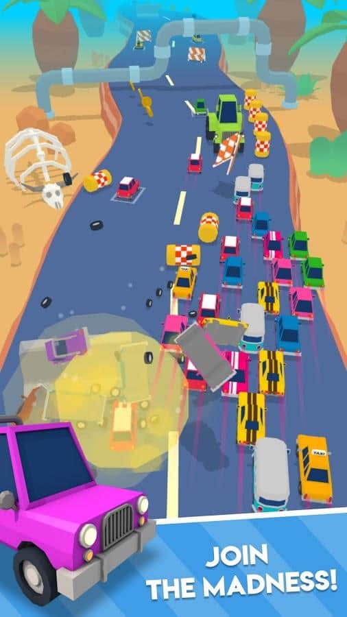Захоплююча і продумана гра Mad Cars змусить вас зненацька! Пройдіть всі рівні на извитой дорозі з безліччю перешкод: бочки, камені, швидкісні і масивні вантажівки, бетонні стіни, огорожі, поліція і фішки. На шляху буде велика кількість машин, які ви повинні причепити до себе. Не важливо скільки і як ви їх втратите, головне щоб хоч одна вціліла і пройшла лінію фінішу. Звичайно, чим більше машин вдало добрався до мети - тим більше прибуток. Ви також можете придбати різні види автомобілів за монети, зібрані на трасах.
