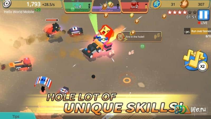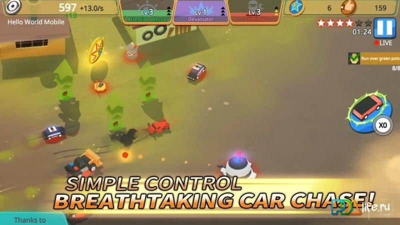 Madnessteer Live - цікава і досить не звичайна гра на андроїд. У цій грі ви будете грати за водія автомобіля, який намагається втекти від переслідування поліцейських машин. Але це ще не все, щоб виграти ви повинні збирати очки і глядачів, а для цього потрібно гарненько по трудиться, адже не вийде просто їхати по прямій.