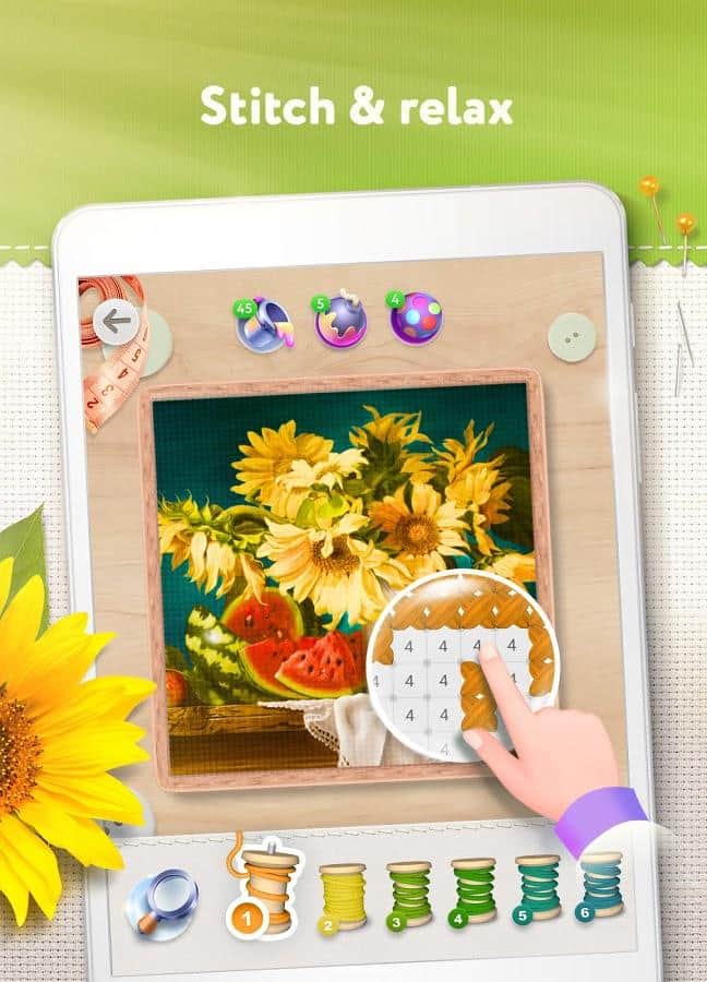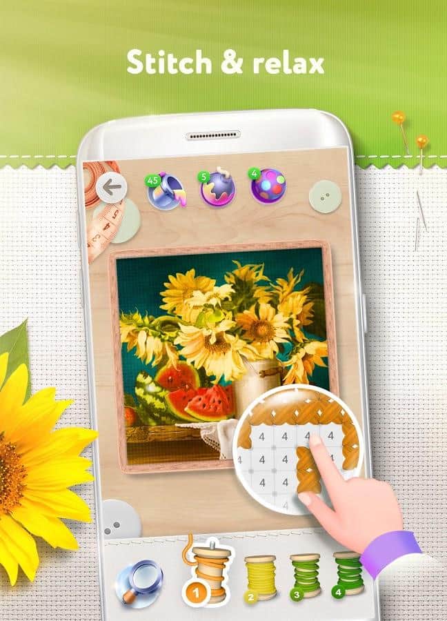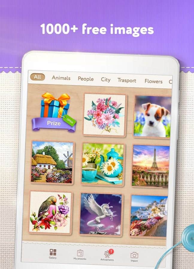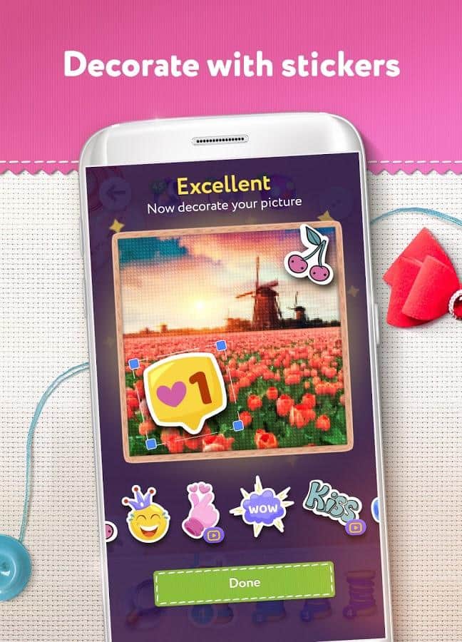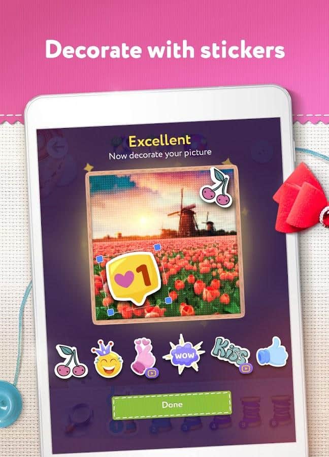 Відпочивайте і розслабляйтеся, вишиваючи разом з грою Диво розмальовки: Вишивка хрестом за номерами. Більше 1000 безкоштовних картинок: тварини, люди, комахи, солодощі і навіть єдинороги. Поліпшення навичок малювання та візуального смаку за рахунок експериментів над квітами, занурення в атмосферу мистецтва. У грі присутні щоденні бонуси і подарунки, за яких стає цікавіше проводити час. Книжка-розмальовка підійде не тільки для дорослих, але і дітей. Адже для дорослих це релакс, а для дітей - захоплива гра, в яку хочеться повертатися кожен день. Також, є функція поділитися кожною картиною в соц. мережах, щоб інші подивилися ваші шедеври.