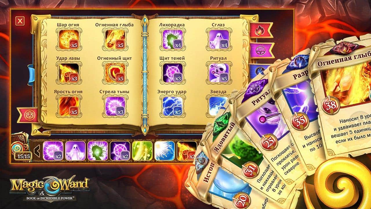 MagicWand – карткова гра на андроїд, де вашим завданням буде зібрати свою книгу заклинань. У цій грі вам належить брати участь в магічних поєдинках і отримувати в нелегких битвах нові заклинання, які поповнять вашу книгу. У грі представлено п'ять магічних шкіл і кожна володіє різними знаннями і вміннями. Зберіть свої заклинання з усіх п'яти шкіл і складіть книгу і 15 сторінок заклинань. З допомогою одного помаху чарівної палички застосовуйте руйнівні атаки і різні заклинання. Перемагайте в нерівних поєдинках своїх опонентів і тренуйтеся, борючись проти комп'ютера тим самим набираючись досвіду. Кидайте виклик реальних гравців і бийтеся, підвищуючи свій ранг чарівника.