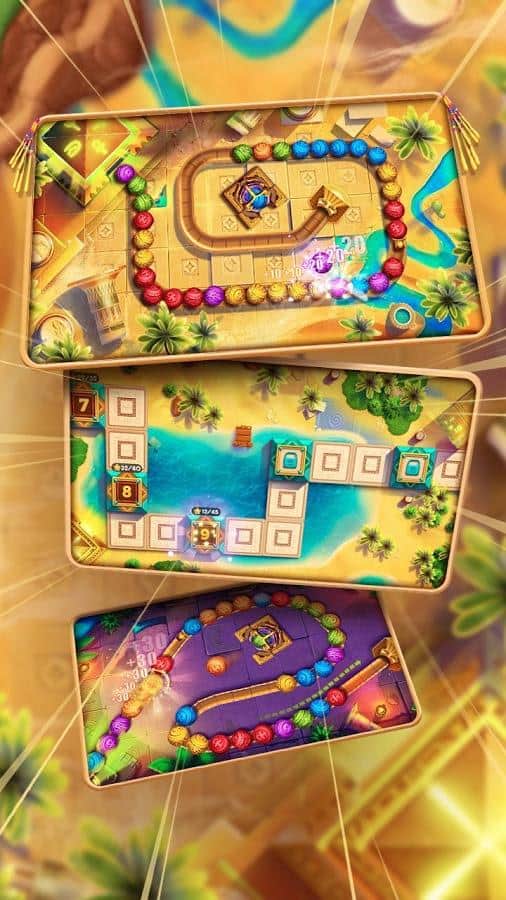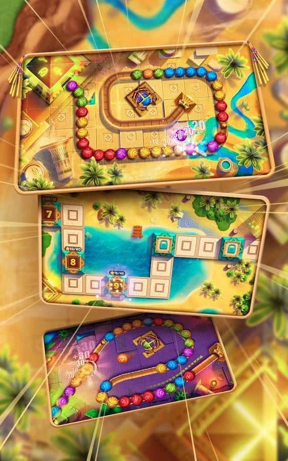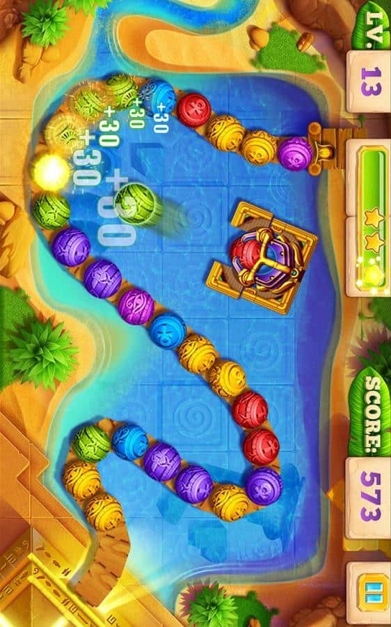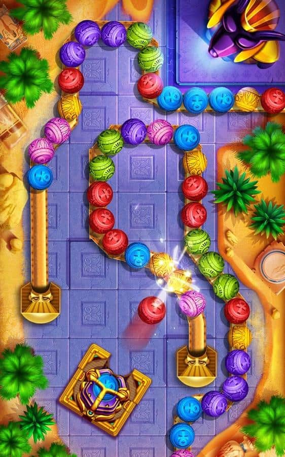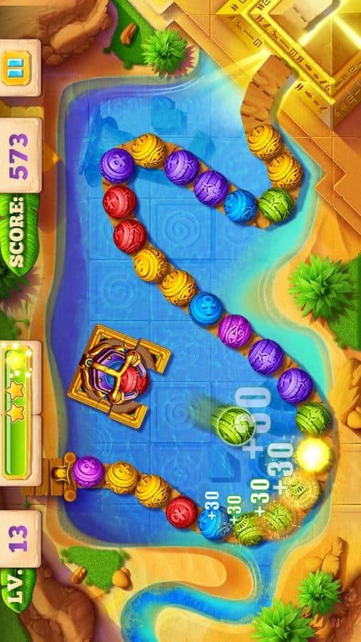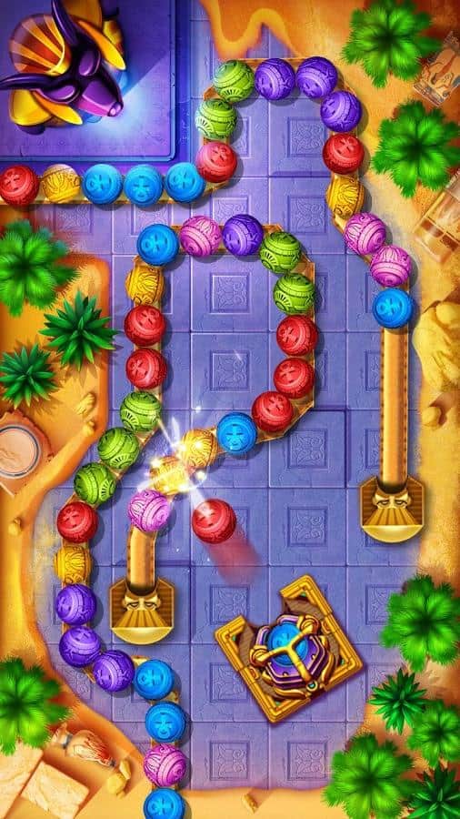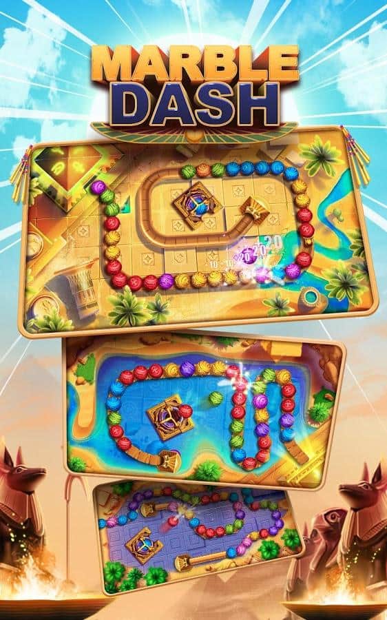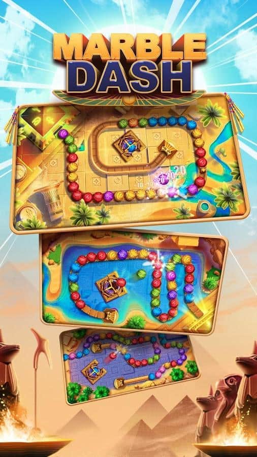 Marble Dash – захоплююча гра на андроїд, яка нагадує знамениту гру Зума. У цій грі ви потрапите в стародавній світ єгипетських пірамід, де вашою головною задачею буде, стріляти різнобарвними кульками по рухомій ланцюжку. Складайте ряди з трьох і більше кульок одного кольору і висаджуйте їх, тим самим набираючи очки. Намагайтеся знищити рухому ланцюжок з повітряних кульок швидше, ніж вона досягне печери. У ваших силах зупинити, уповільнити або повернути назад рухається ланцюжок. Вистрілює з гармати різнокольорові кулі і отримуйте в якості нагороди бонуси і посилення, які також дозволять вам заморожувати ланцюжок куль. У грі представлено більше 96 рівнів, просте управління і численні бонуси.