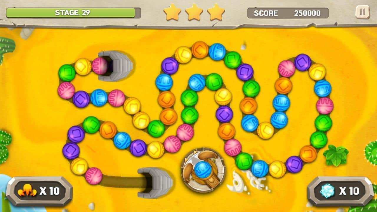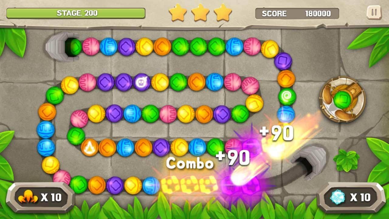 Marble Mission – захоплююча гра на андроїд, дуже нагадує знамениту гру Зума. У цій грі, як і в її оригінальній версії, вам потрібно стріляти різнобарвними кульками в рухому ланцюжок і проробляти комбо удари. Підключайте свою логіку і спритність пальців щоб потрапити кулькою в скупченні куль однакового кольору і підірвати їх. Чим більше ви будете проробляти вибухів, тим повільніше буде рухатися ланцюжок або зовсім зупиняти свій рух. Використовуйте бонуси і посилення і пройдіть всі рівні гри.