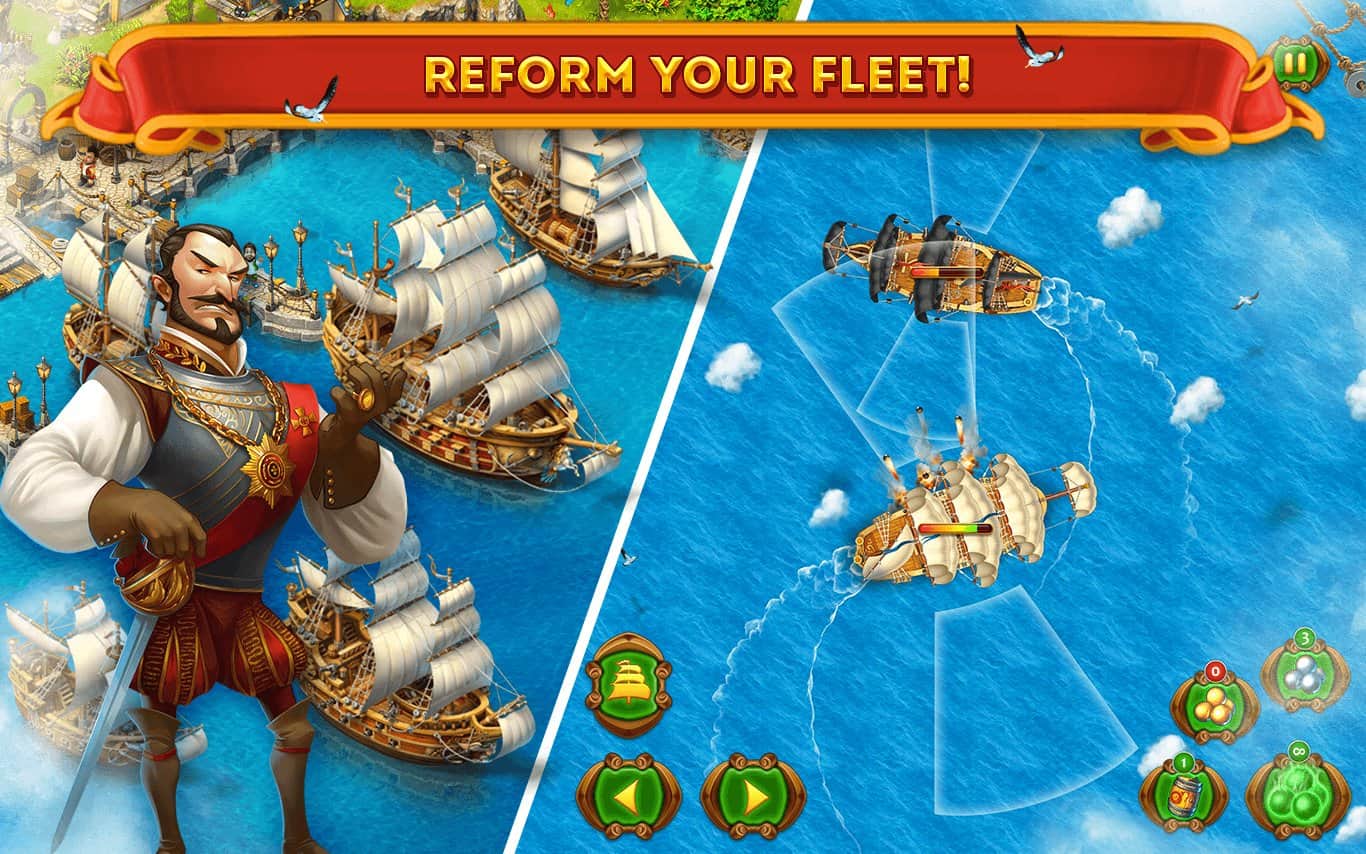 Maritime Kingdom для Андроид классический "градострой" действие которого разворачивается в эпоху великих географических открытий. Игра включает в себя элементы классических RTS, так что по мимо строительства, создания флота, ведения боевых действий, выполнения квестов и заданий, вам предстоит обратить внимание на исследование территории и добычу ресурсов, коих в игре более 30 видов. Не стоит забывать и о социальной составляющей, при помощи соц. сетей вы сможете найти себе сторонников и друзей которые помогут вам в сложных ситуациях.