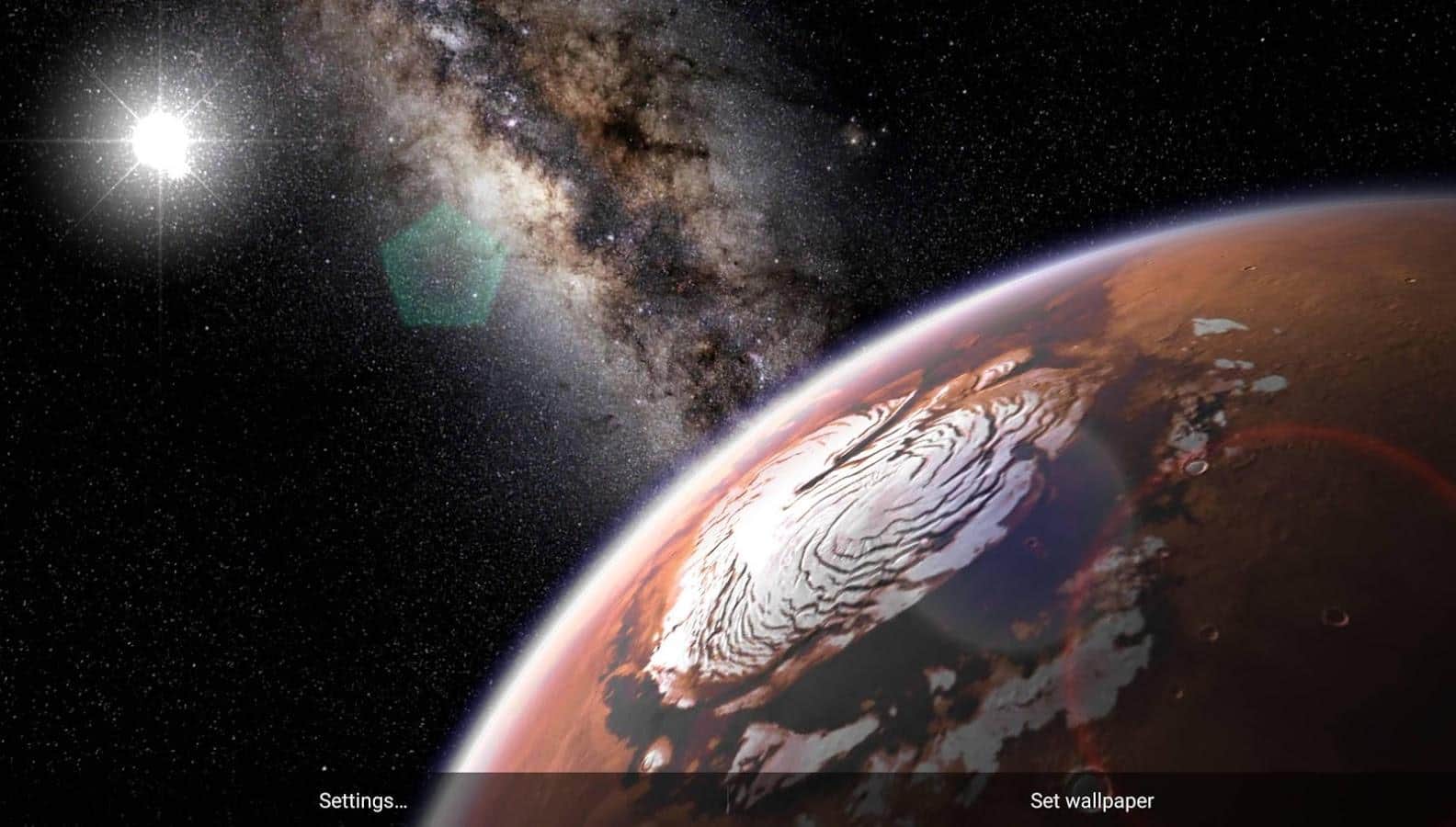 Mars in HD Gyro 3D XL – дивовижні і неповторні інтерактивні живі шпалери на андрод телефони та планшети. Це найкрасивіші і захоплюючі живі шпалери з відкритим космічним простором, де ви буде спостерігати місяць у різних ракурсах, і насолоджуватися 3D її паралакс ефектами з допомогою гіроскопа. Встановіть ці шпалери на свій телефон і міняйте ракурс камери за допомогою одного дотику до екрану, а також налаштовуйте різні ефекти на свій розсуд. Міняйте масштаб, швидкість обертання місяця, колір заставки і насолоджуйтеся, спостерігаючи за тим, що відбувається на вашому екрані.