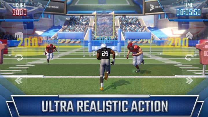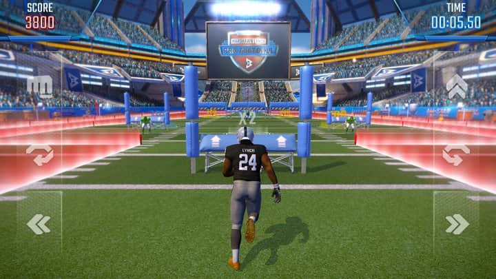 Marshawn Lynch Pro Football – відмінна спортивна гра на андроїд, де ви будете грати в американський футбол. Візьміть під свій контроль досвідченого нападника і пройдіть через все поле, обходячи перешкоди або руйнуючи їх. На своєму шляху ви також зустрічатиме захисників команди супротивників, обходьте їх і прокладаючи безпечний шлях до воріт противника. Забивайте один гол за іншим і встановлюйте рекорд по часу проходження гри. Гра порадує гравців реалістичною графікою високого дозволу, яка вас повністю занурить в гру і відмінною фізикою і анімацією гравців. Грайте в цю гру в будь-який вільний час і отримуйте максимум задоволення від захоплюючого геймплея.