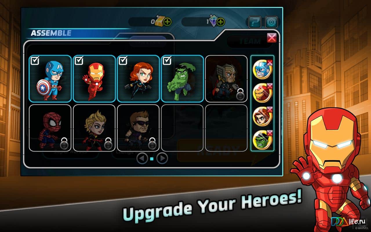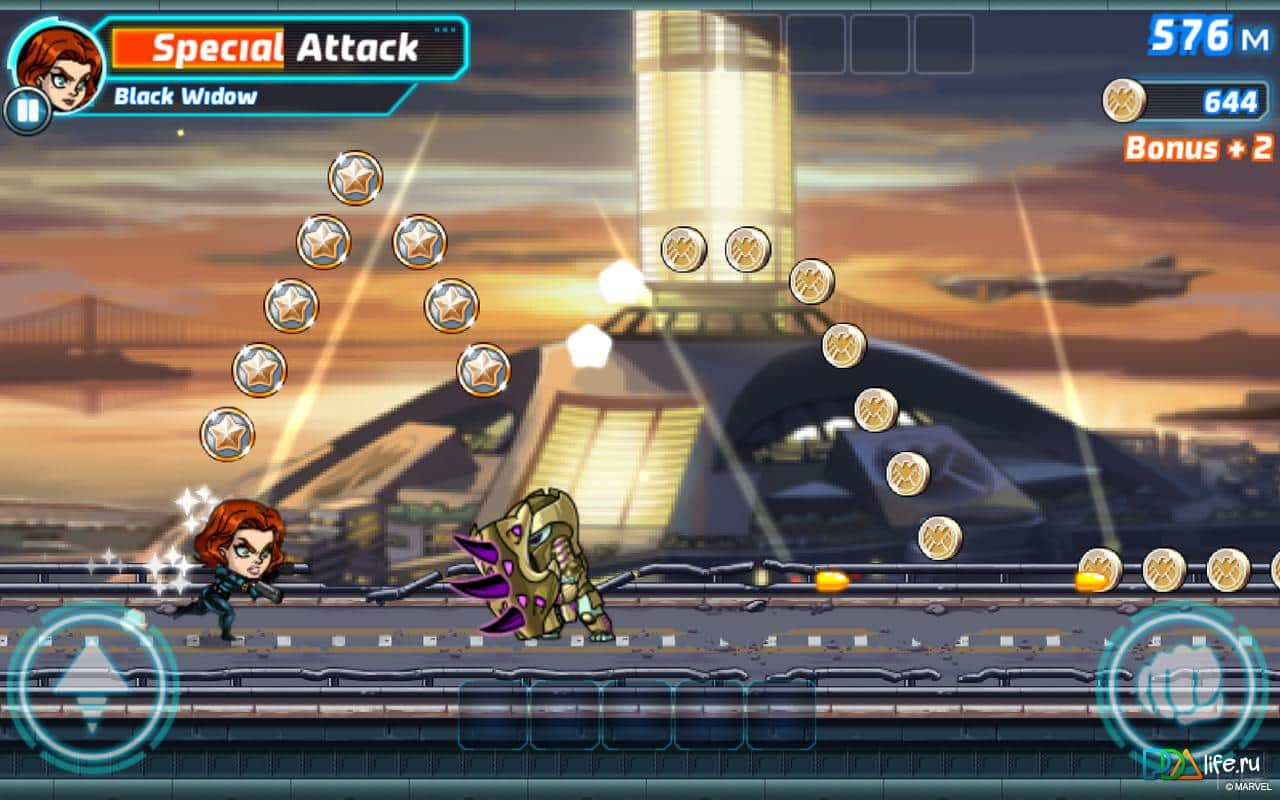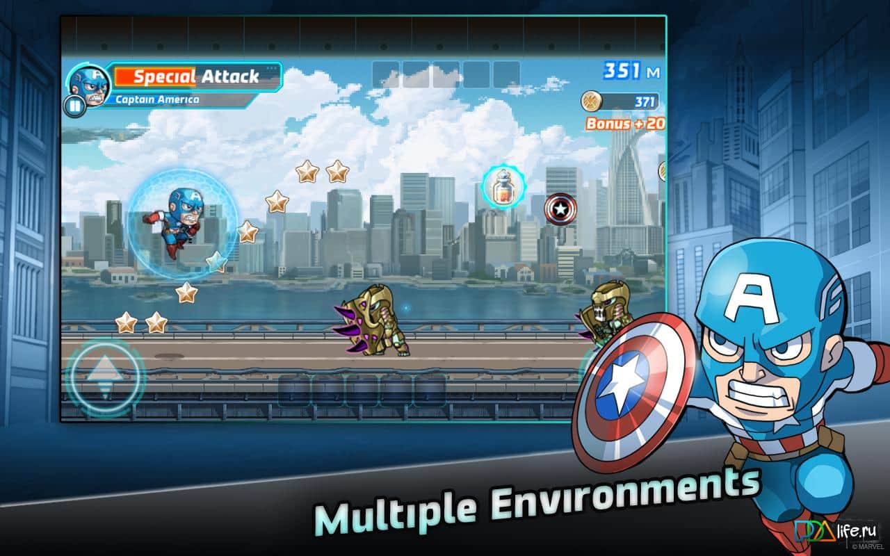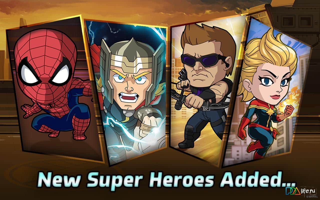 Marvel Run Jump Smash! - игра на аndroid, где вы будете сражаться за одного из супер-героя. Выбирайте супер-героев, то может быть, Железный человек, Халк, Капитан Америка, Черная Вдова, Человек-паук и другие. Бегайте, прыгайте и сносите все на своем пути, а также сражайтесь с супер-злодеями и его помощниками. Также у вас будет возможность переключать персонажей по ходу игры и улучшать их способности.