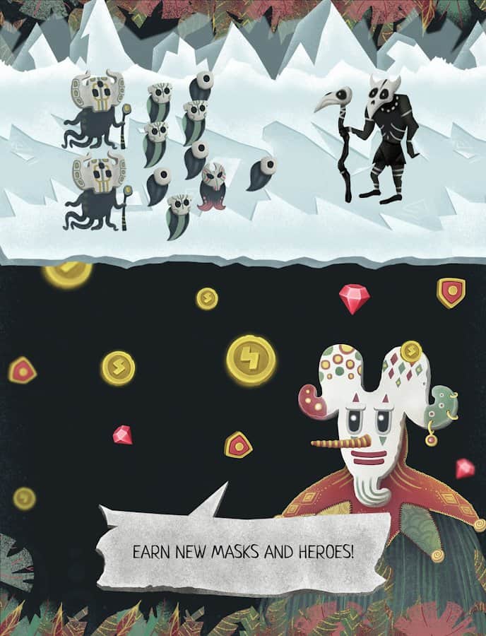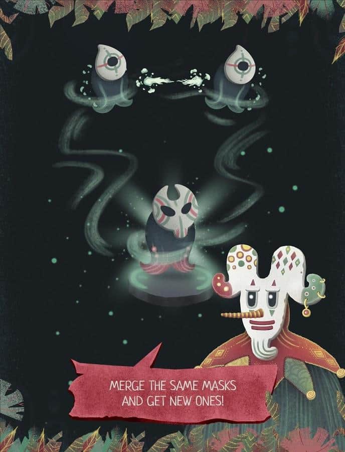 Mask Merge - містична аркада з елементами ролевки події якої розгортаються в якомусь вигаданому світі, світі, в якому вже кілька століть йде запекла війна між духами і шаманами. Варто відзначити, що шаманів вдалося ув'язнити духів, але з часом чарівники застаріли і втратили колишню майстерність і тепер вам на чолі з міцними духами належить постаратися здобути свободу. Особливістю гри є те що всі ваші вміння і навички будуть визначати різними масками, які ви буде отримувати в процесі проходження.