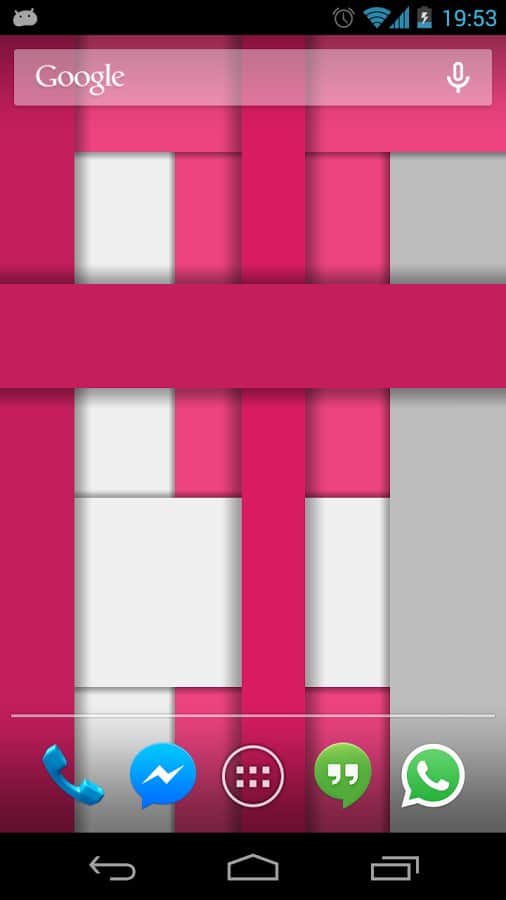 Material Design Live Wallpaper - Прості і приємні для погляду шпалери. У них немає нічого зайвого, такий собі шедевр мінімалізму. Виглядають вони дуже простенько, але при цьому дуже красиво. Ще не варто забувати, що при своїй простоті, вони споживають менше батареї. Хоча в них присутні анімація, яку ви можете налаштувати під себе. Наприклад при подвійному натисканні по екрану, колір ваших шпалер буде змінюватися випадковим чином. А так само ви можете обертати їх, використовуючи лише акселерометр. Використовуючи комбінування кольору і малюнка, кожен зможе створити для себе саме ті шпалери, які хотів, насолоджуйтеся!