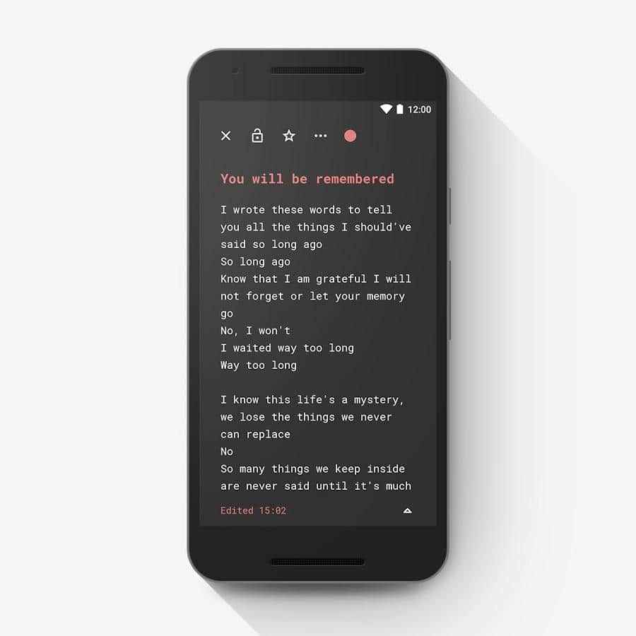 Material Notes: Colorful notes - Просте рішення для тих хто часто забуває. Ці замітки не тільки зручні, але і досить універсальні. Ви зможете вибирати для них кольору, що б розрізняти їх за важливістю, або ж таким чином виділяти певну категорію нотаток. Так само, для безпеки ваших даних, потрібно буде підтверджувати код доступу, а це означає, що ваші дані будуть доступні тільки вам. Загалом додаток досить просте і не споживає багато ресурсів смартфона, що й робить його унікальним.