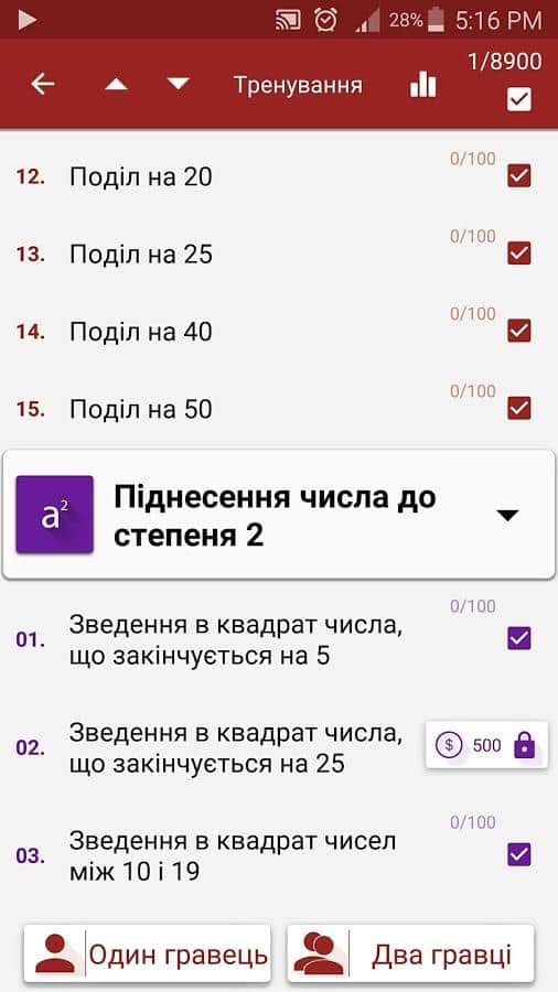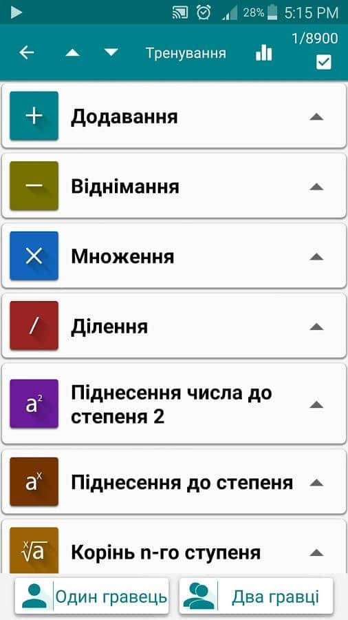 Math Tricks / Математические приемы - это полезное и интересное приложение для андроид приведет в восторг как любителей математики и логики, так и фокусников. Какая связь - да самая простая. С помощью математических приемов, которые вы сможете освоить с помощью данного приложения, вы легко сможете просчитывать сложные математические задания в считанные секунды. Но для того, чтобы все освоить, начните с тренировочного режима, в котором вы сможете понять логику производимых действий. Приложение интересно возможностью посоревноваться с другом (особенно это шокирует друзей, которые еще об этом приложении не слышали!). Итак, вы легко освоите хитрости сложения и вычитания, умножения и деления, возведения в квадрат, степени двойки и многое другое. Кроме того, приятно удивит неоновая подсветка интерфейса и 3 цветовые схемы. А в режиме игры с другом - правильный ответ сдвигает центральную линию в сторону победителя - типа перетягивания каната...Дерзайте!