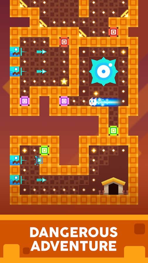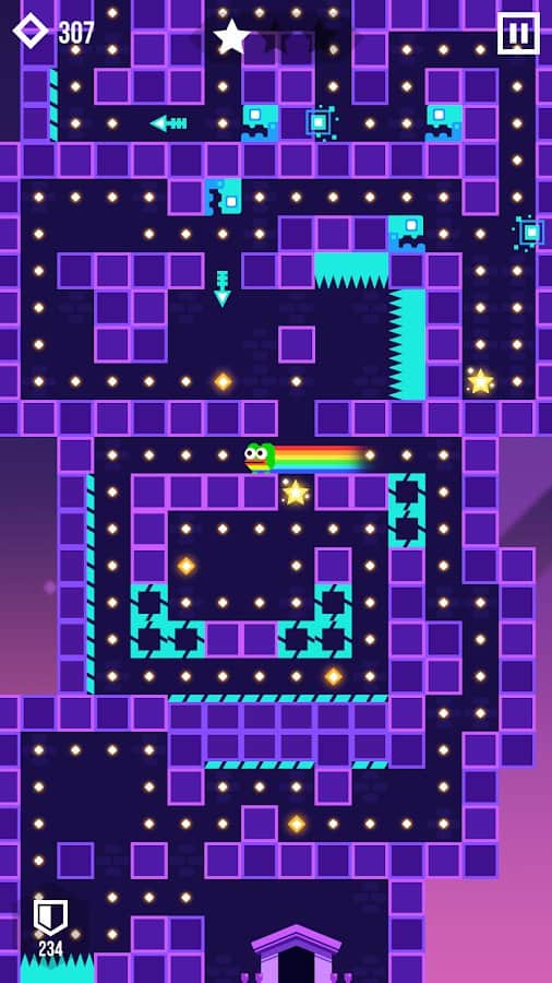 Освоїть більше 100 різних рівнів, втікши з заплутаного лабіринту, де розташовані складні головоломки. Виберіть подобаючого персонажа з доступних і почніть безпечно переміщатися від стіни до стіни, при цьому самостійно обираючи такий шлях, де зовсім немає пасток. Вам доведеться не лише вибратися з лабіринту, а й зібрати всі точки, зірки, щоб купувати нових персонажів і покращувати певні предмети. Намагайтеся діяти обережно, інакше можете витратити всю свою енергію на відновлення, що потребує часу.