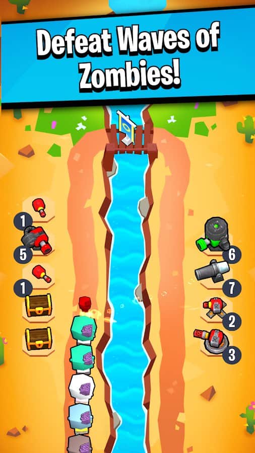 Merge TD: Idle Tower Defense – стратегія на андроїд, де ви будете захищати свої землі від зомбі. Використовуйте автоматичні турелі для того щоб побудувати не сокрушимую лінію оборони і не дати кровожерливих зомбі прорвати її. Створюйте захисні вежі поєднуючи між собою турелі та модернізуйте їх на свій розсуд. Вас будуть атакувати хвилі зомбі, так що приготуйтеся до динамічної битві. Відкрийте для себе нові локації і готуйтеся до зустрічі з сильними босами і могутніми монстрами. У цій грі ви знайдете більш 30 видів турелей, безліч різних локацій і корисних підсилень.