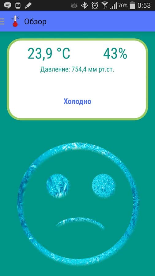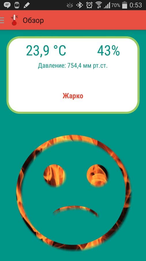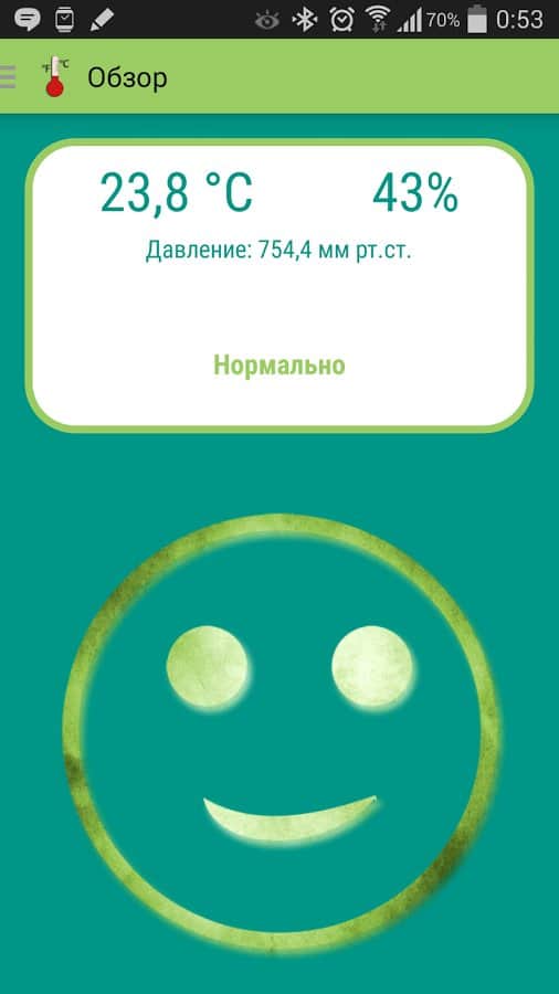 Метеостанция – интересное приложение, представляющее собой просмотр температуры окружающей вас среды (Цельсий и Фаренгейт), влажности и атмосферного давления (гПа, Па, мм. рт. ст), использовав при этом датчики вашего устройства. Не содержит назойливой рекламы. Приятного пользования и хорошей погоды, что бы там ни было за окном!