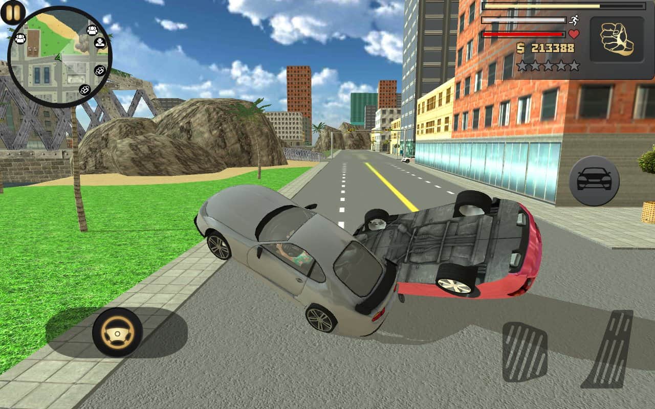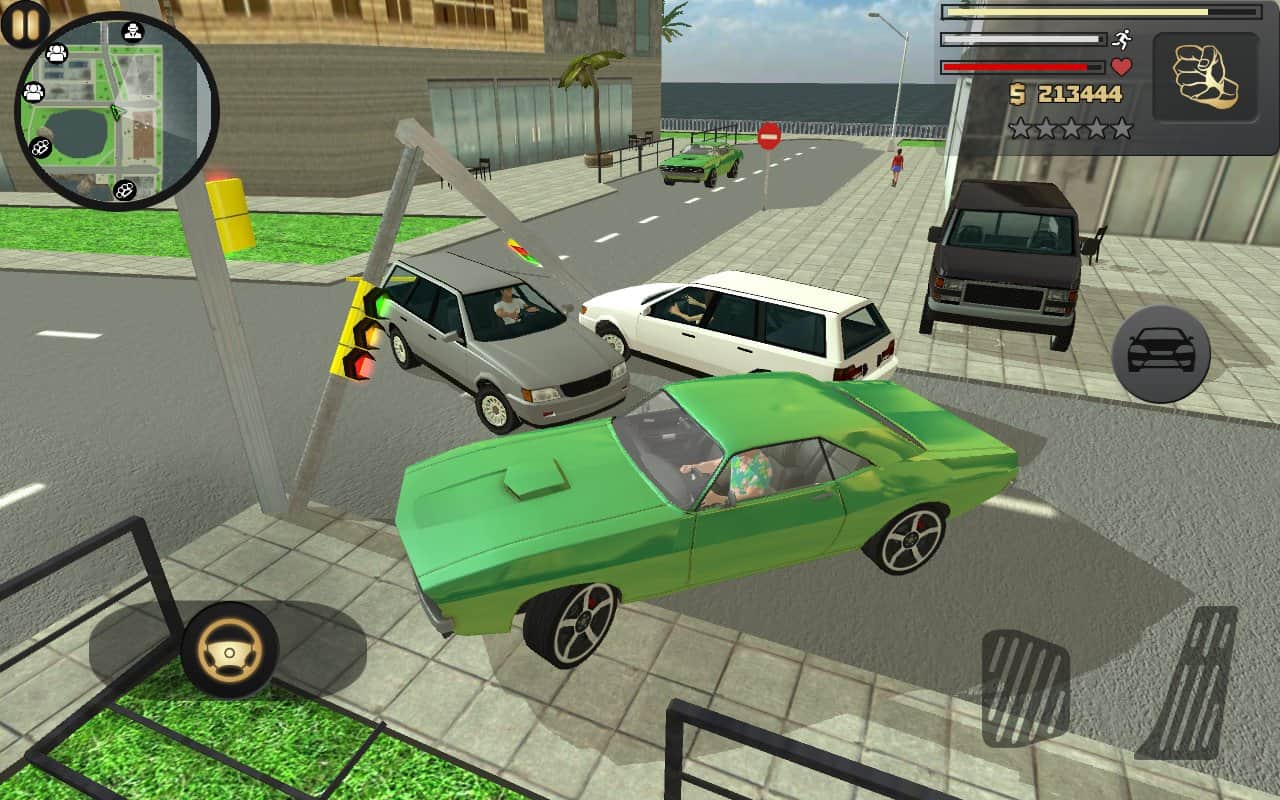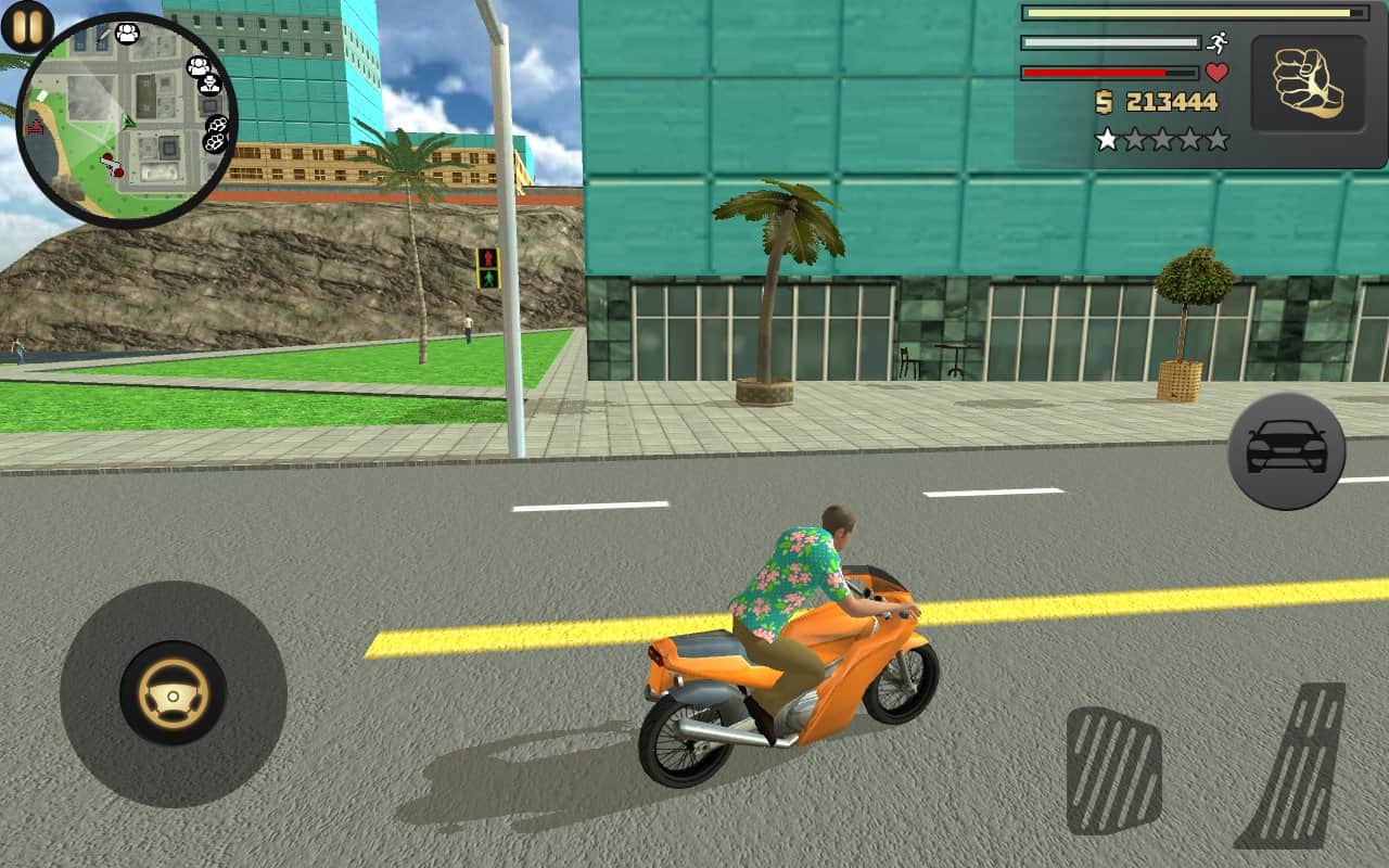 Miami crime simulator – симулятор на андроид, в котором вы попадете в один из самых приступных городов – Майами. В этой игре вам предстоит стать бандитом, и совершать различные преступления, на которые хватит вашей фантазии. Бегайте по городским улицам, нападайте на прохожих, разбивайте витрины магазинов и угоняйте понравившиеся машины. Делайте все что угодно вашей душе, но будьте осторожны, в любой момент за вами может погнаться полиция. Это интересная игра, где у вас развяжутся руки, и вы будете весело проводить свое свободное время, гоняя на машинах, крутых мотоциклах и вступать в драку с полицией.