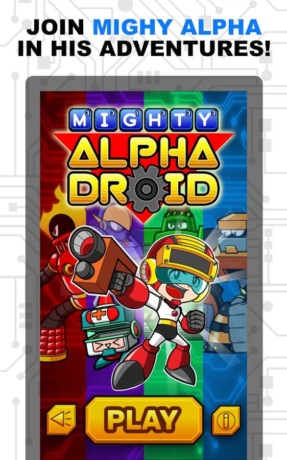 Mighty Alpha Droid - гра представляє з себе щось середнє між ролевкой і головоломкою. І так, події Mighty Alpha Droid розвиваються в далекому майбутньому, на якусь невідому нам планету скоєно напад величезними дрона і єдиний порятунок криється в особі маленького, але могутнього героя по імені Alpha Droid вам належить допомогти йому в порятунку рідної планети. А зробити це можна лише одним способом, з випадково випали букв складаючи слова ви будете отримувати можливість завдавати смертельні удари нападників, при цьому чим більше за розміром ворог тим довше слово вам належить скласти. Весь геймплей представлений в ігровій формі, анімований, а ігрові поля виконані з використанням барвистою графіки.