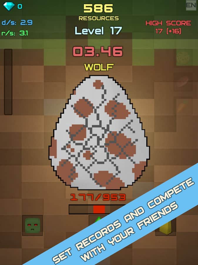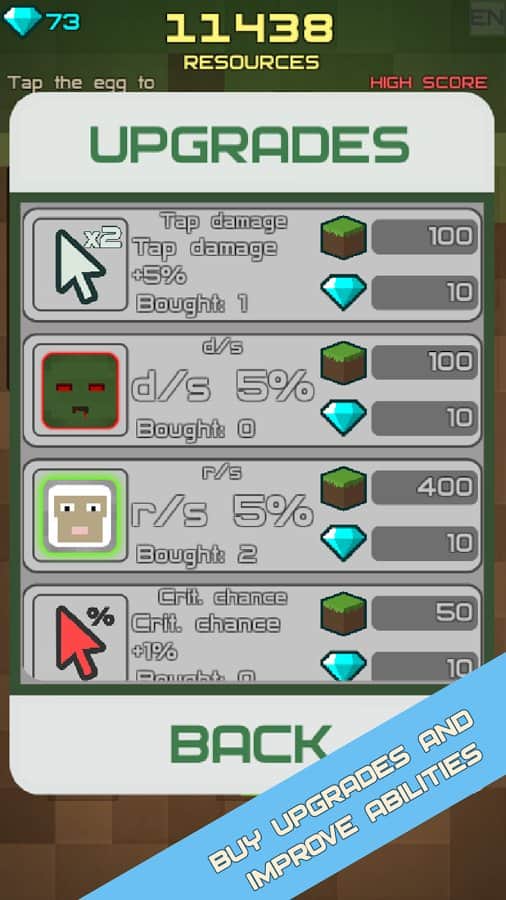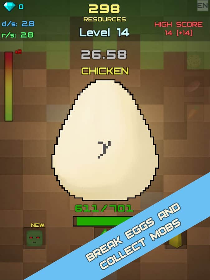 Mine Egg Craft Clicker – клікер на андроїд, де ви будете розбивати яйця. Натискайте на екран свого телефону або планшета як можна швидше і намагайтеся за 30 секунд розбити яйце, з якого повинен з'явитися моб. У цій грі ви знайдете велику кількість різноманітних тварин і монстрів, які будуть допомагати вам, битися з вашими ворогами і заробляти якомога більше ресурсів. Розбивайте якомога більше яєць і проходите захоплюючі рівні. Ловіть як повз їжу і за рахунок неї покращуйте свої показники і бойові вміння вихованців. Встановіть свої рекорди в цій грі і отримайте в якості нагороди величезні алмази.
